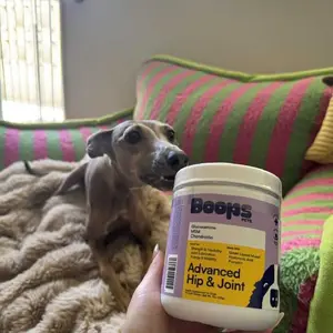 My 10 y/o lab mix could barely get up the steps before. Now she runs, jumps on the couch, and even goes upstairs again! Boops Hip & Joint chews feel like a second chance. She’s not wild about the taste but eats them when I ask. So grateful!