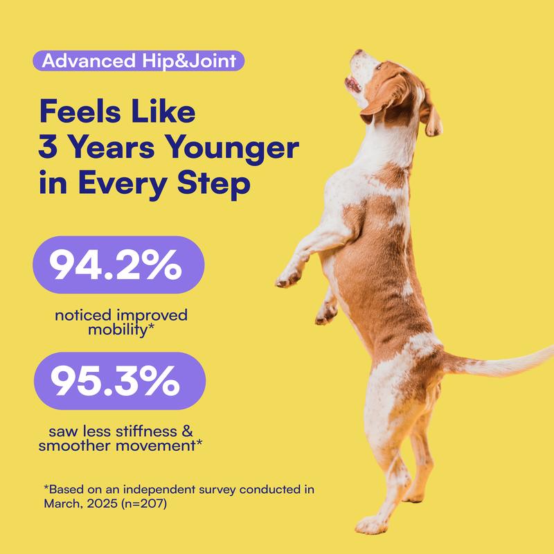 I’ve been giving my senior dog these Advanced Hip & Joint Soft Chews for about a month, and I’m already seeing a difference. He’s moving more easily and seems less stiff, especially in the mornings. The chews must taste good because he thinks they’re treats and gobbles them right up. I love that they’re made with pasture-raised chicken and include glucosamine, MSM, and chondroitin — perfect for joint support and overall health. Highly recommend for dogs who need a little extra help staying active and comfortable!