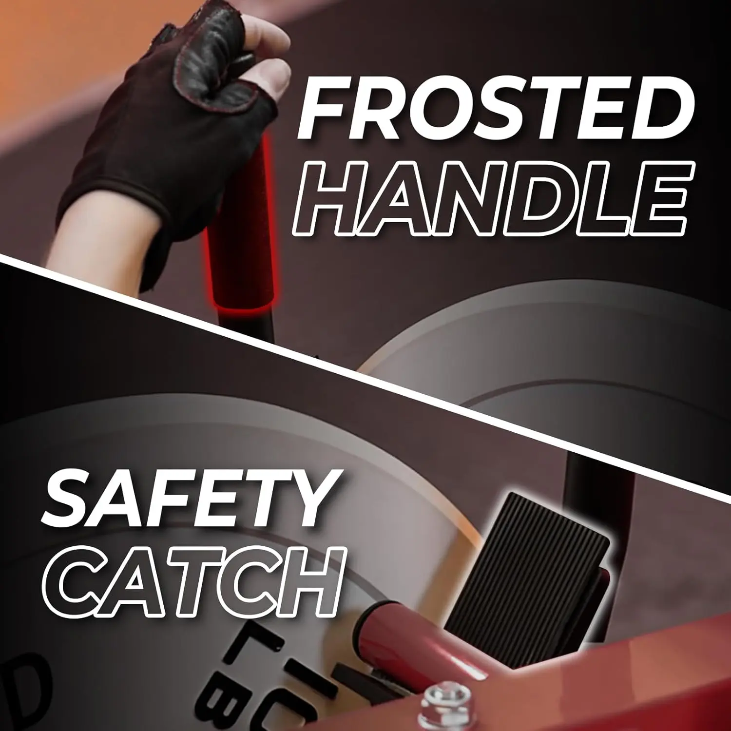 ·What We Upgraded: Experience comfort like never before with a comfortable padded, perfectly designed to secure to the comprehensive back pad that supports the full length of the spine throughout your workout. Both are hard to achieve when setup with free weights. Plus, weight holder max capacity to load up to 500 lbs(each 250lbs), with three-position adjustable pedal, there's no limit to your progress.