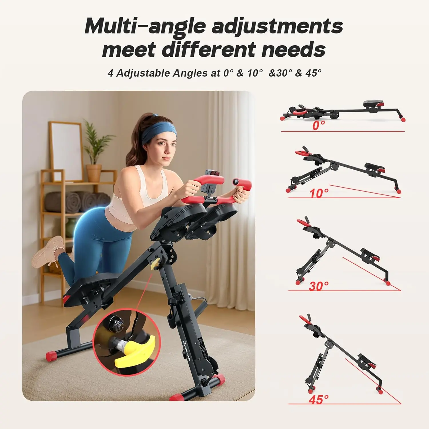 ·[Adjustable Ab Trainer Machine] This versatile rowing machine for home features 4 adjustable height positions and 4 angle settings, letting you tailor it to your body type and workout intensity. Ideal for all fitness levels, it empowers you to sculpt your core and build your ideal physique through highly efficient abdominal workouts !