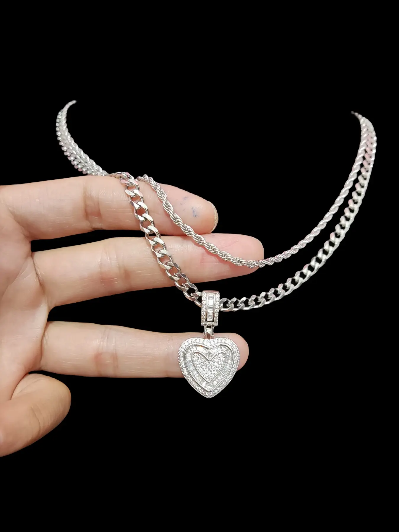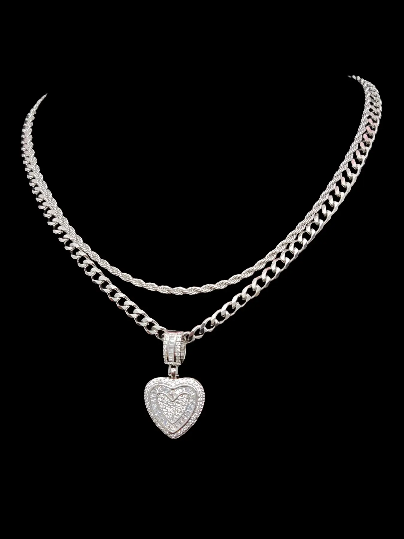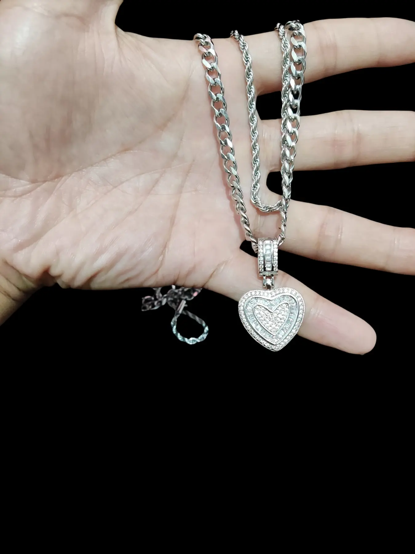 2Pieces/Set  Men or Women Hiphop Love Heart Pendant Necklace Fashion  Vintage Hip Hop Necklace Is Perfect For Party Or Everyday valentine Gifts Cuban Link Necklace
