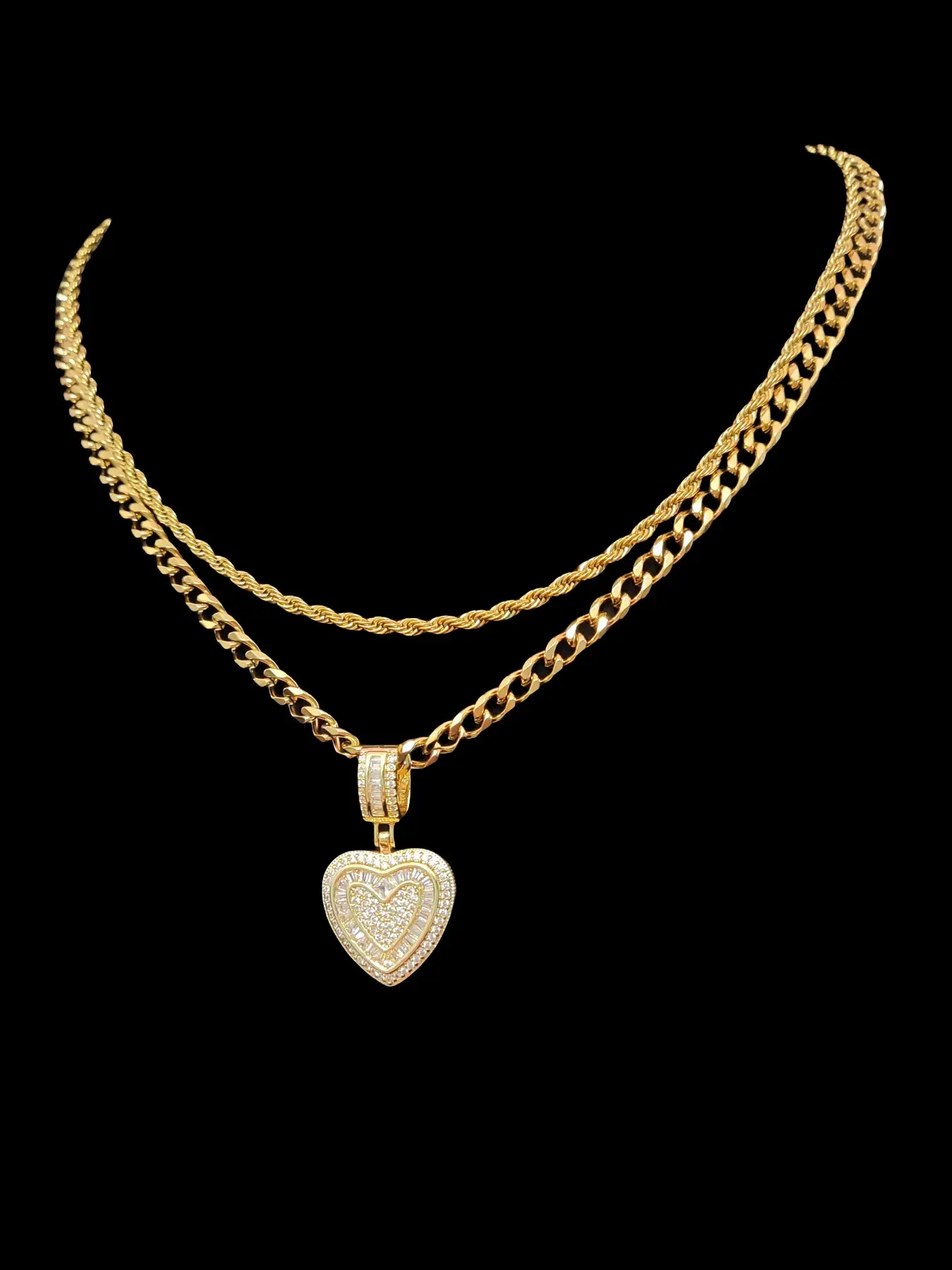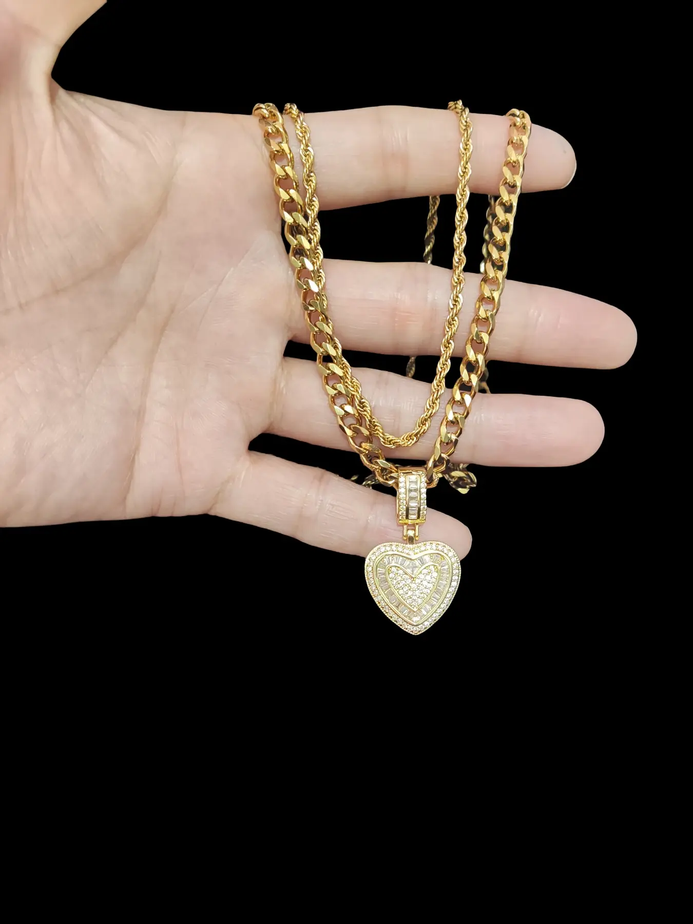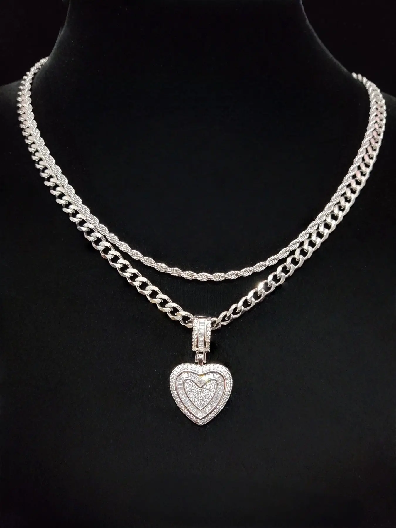2Pieces/Set  Men or Women Hiphop Love Heart Pendant Necklace Fashion  Vintage Hip Hop Necklace Is Perfect For Party Or Everyday valentine Gifts Cuban Link Necklace