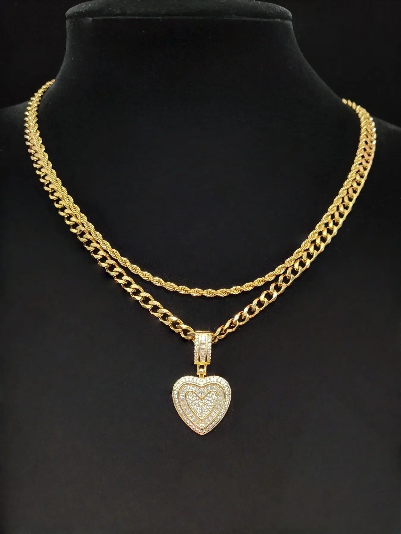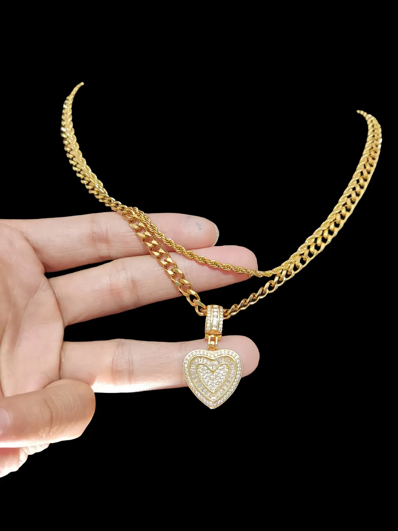 5. 2Pieces/Set Men or Women Hiphop Love Heart Pendant Necklace Fashion Vintage Hip Hop Necklace Is Perfect For Party Or Everyday valentine Gifts Cuban Link Necklace