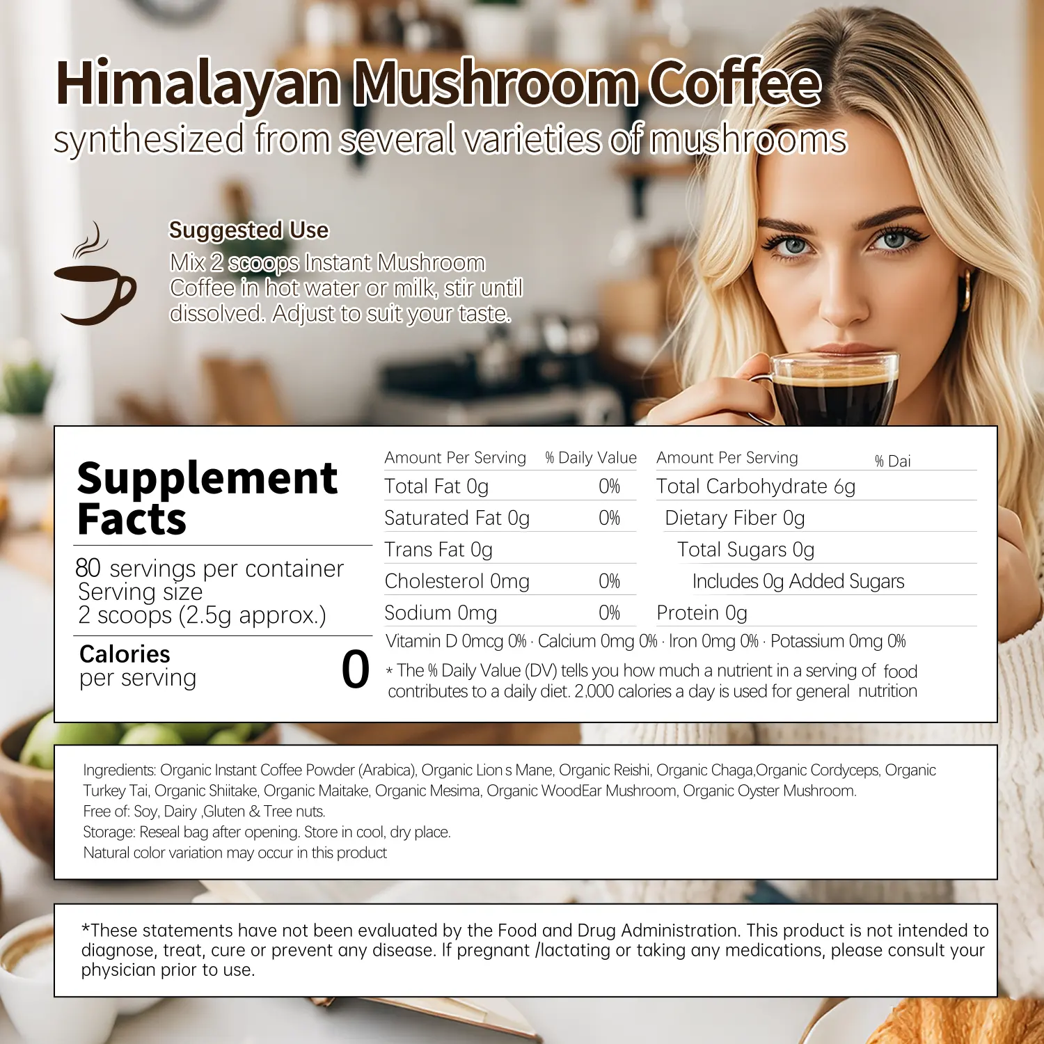 IngredientsLion's Mane Mushroom, Ganoderma lucidum, Cordycepssinensis, Chicken Leg Mushroom, Shiitake MushroomMaitake,Mercima, Auricularia and Oyster Mushroom, etc