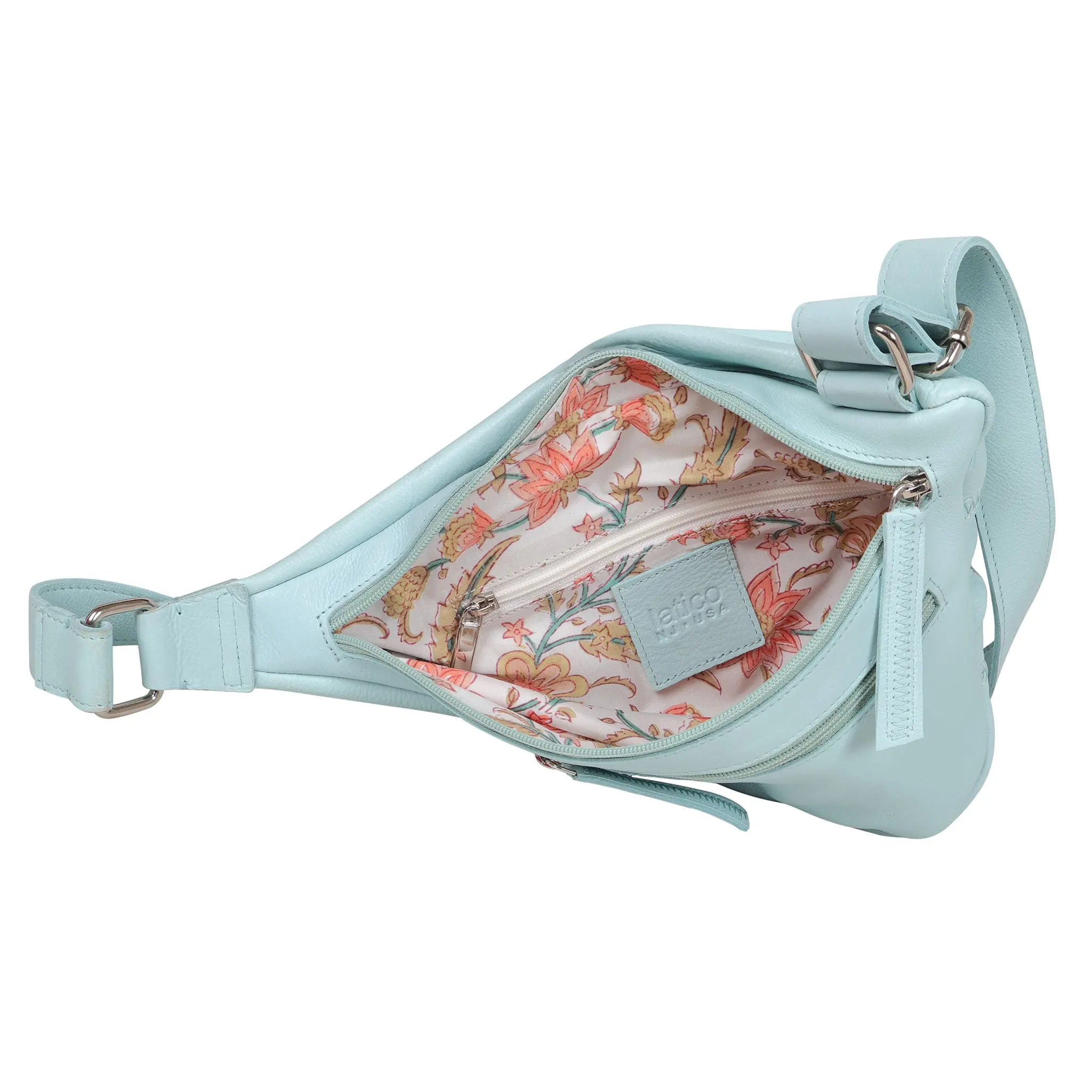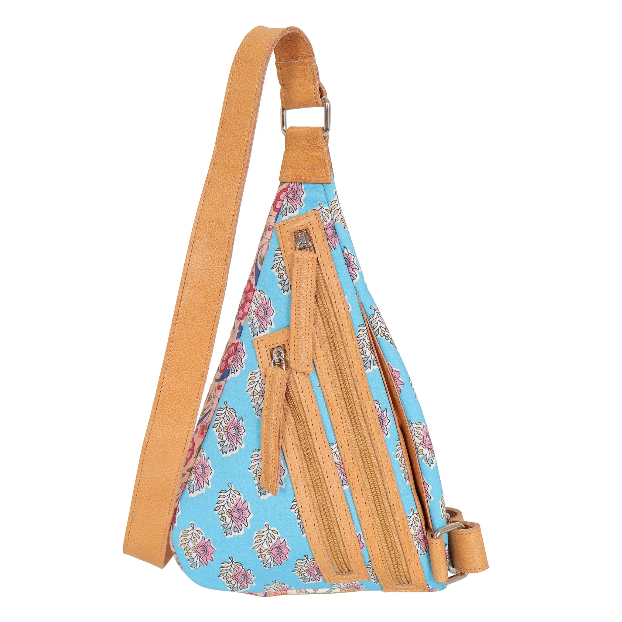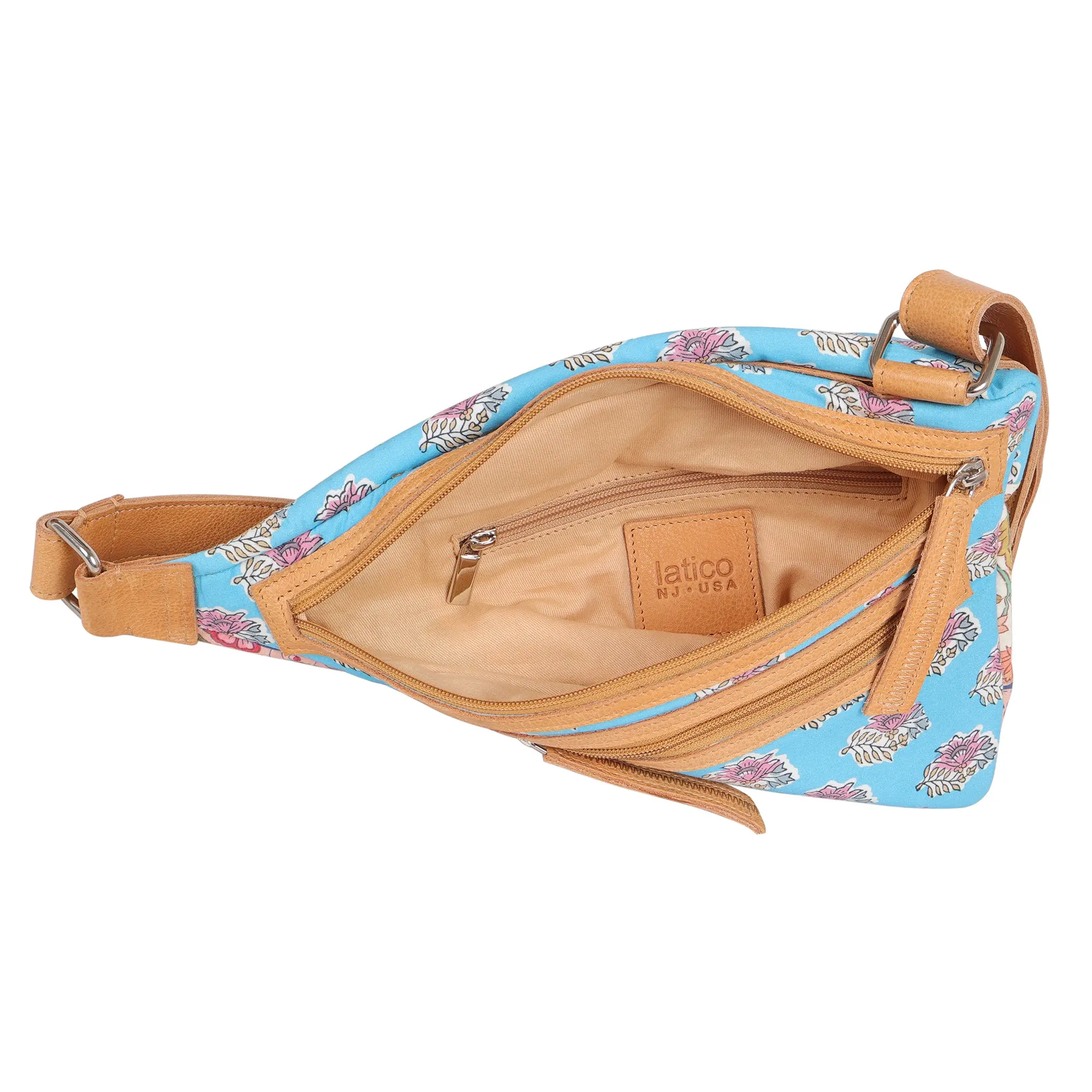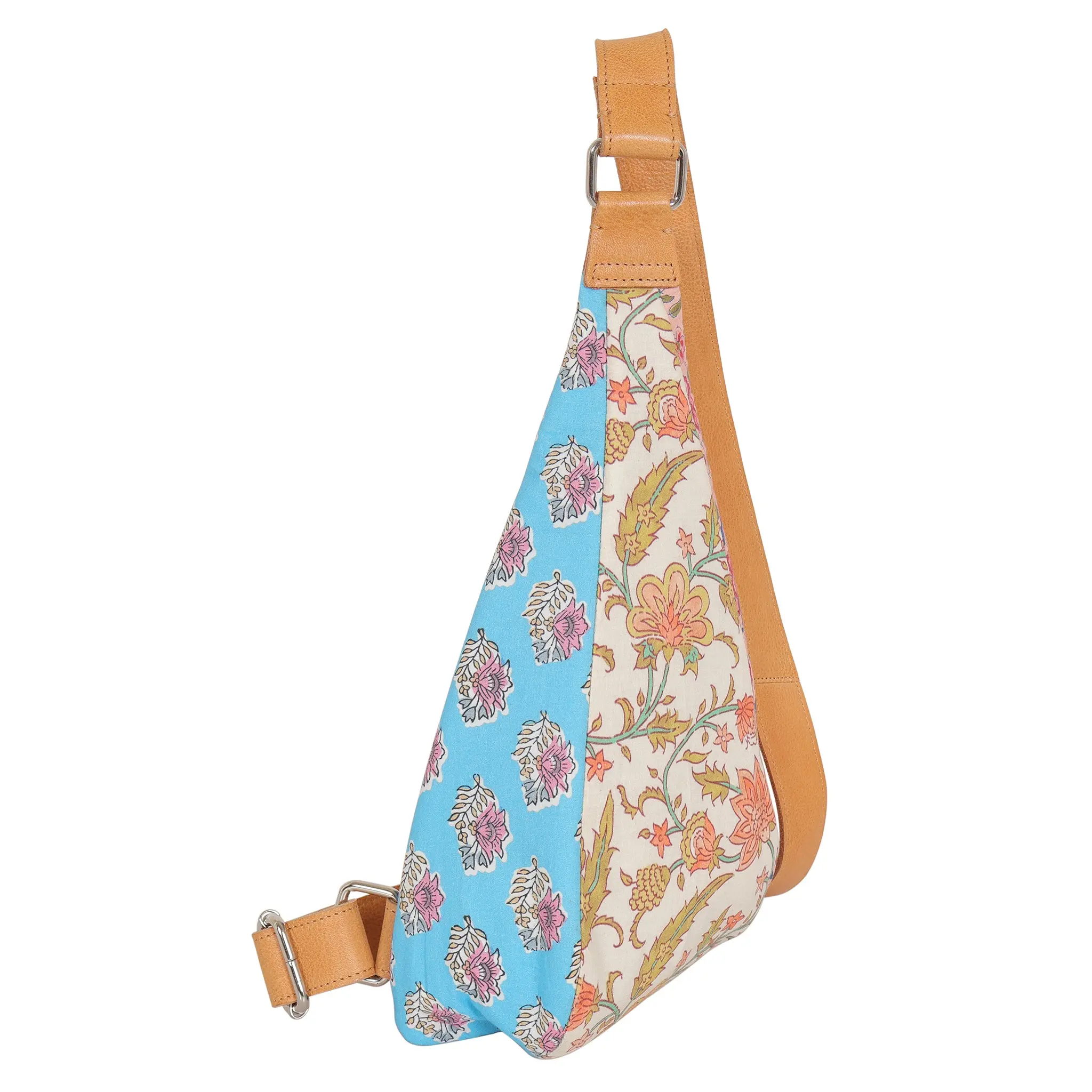 Handcrafted in small batches by skilled artisans in South America and India—never mass-produced. Each bag showcases unique natural variations in grain and shading that only the highest-quality leather can provide. Floral patchwork features a fabric floral pattern.