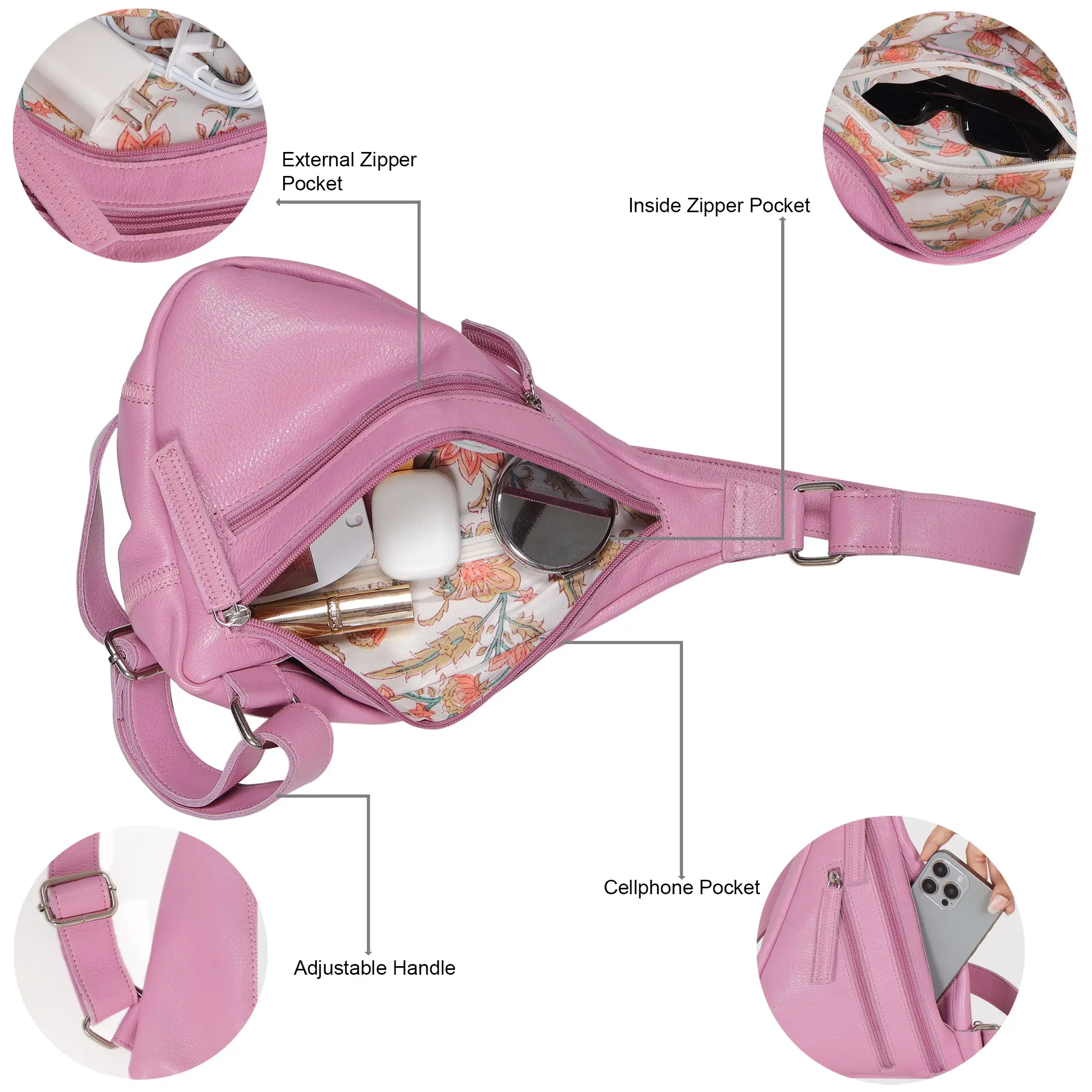Ergonomic sling design with 2 exterior pockets (one is our signature hidden cell phone pocket). Wear it on your front, side or back. All the function in a sleek effortless shape. Smaller version of the Hippie Sling.