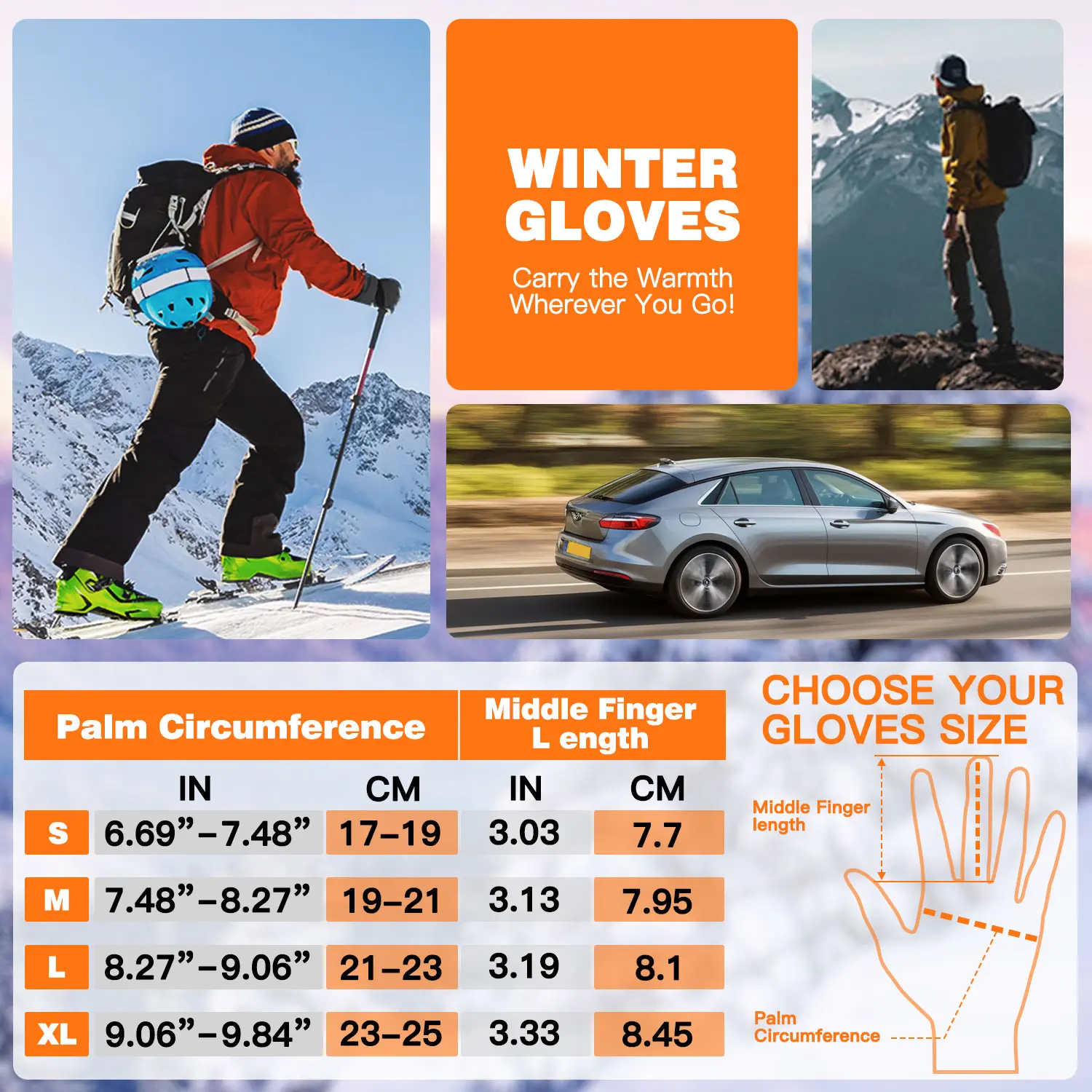 Comprehensive Touchscreen Compatible: Our gloves feature a unique touch-sensitive material covering the entire exterior, enabling accurate use of your phone or tablet without needing to take them off.Stay connected and capture every moment without missing important calls or photo opportunities.These versatile gloves also serve as windproof gloves, running gloves, driving gloves, ski gloves, snow gloves, snowboard gloves, and motorcycle gloves.