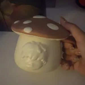 Beautiful cup, love the white and hirono. The mushroom lid was an added cuteness.
