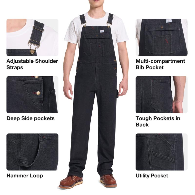 ·SOFT & DURABLE FABRIC: These mens overalls are made of 13oz dual-core-spun yarn denim material, The flex 2% elastic spandex makes it stretchy, brings a comfortable wearing experience, and is not easy to deform after long-term wearing. Triple-stitched seams will not unravel, create much stronger seams for added durability.