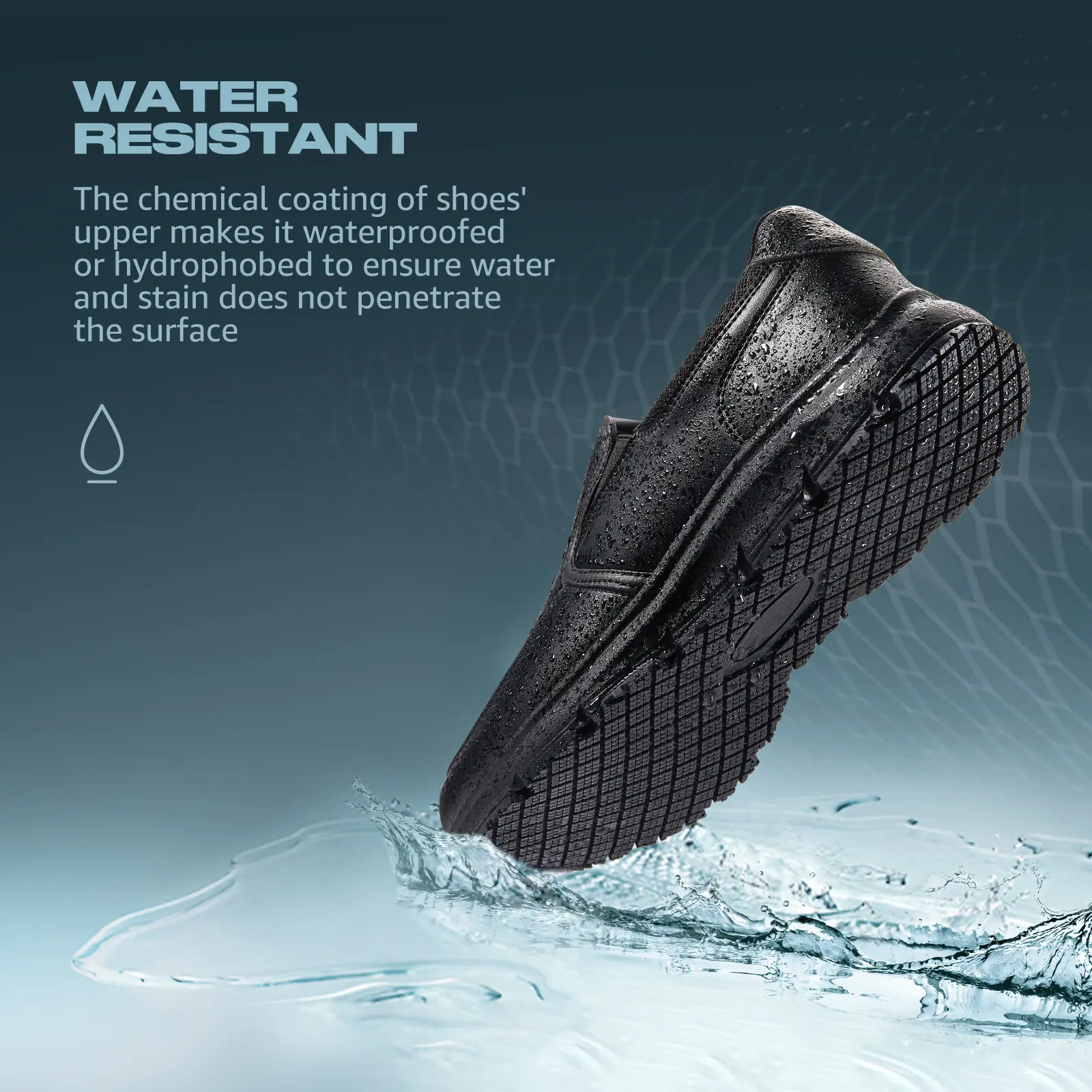 ·Water & Stain Resistant: Stay dry and clean, perfect as mens slip resistant work shoes. The durable and soft synthetic leather upper meets occupational needs. The added Special Chemical Coating (SCC tech.) causes water drops and stains to form beads on the surface, making this mens slip on sneakers easy to clean and quick to dry.