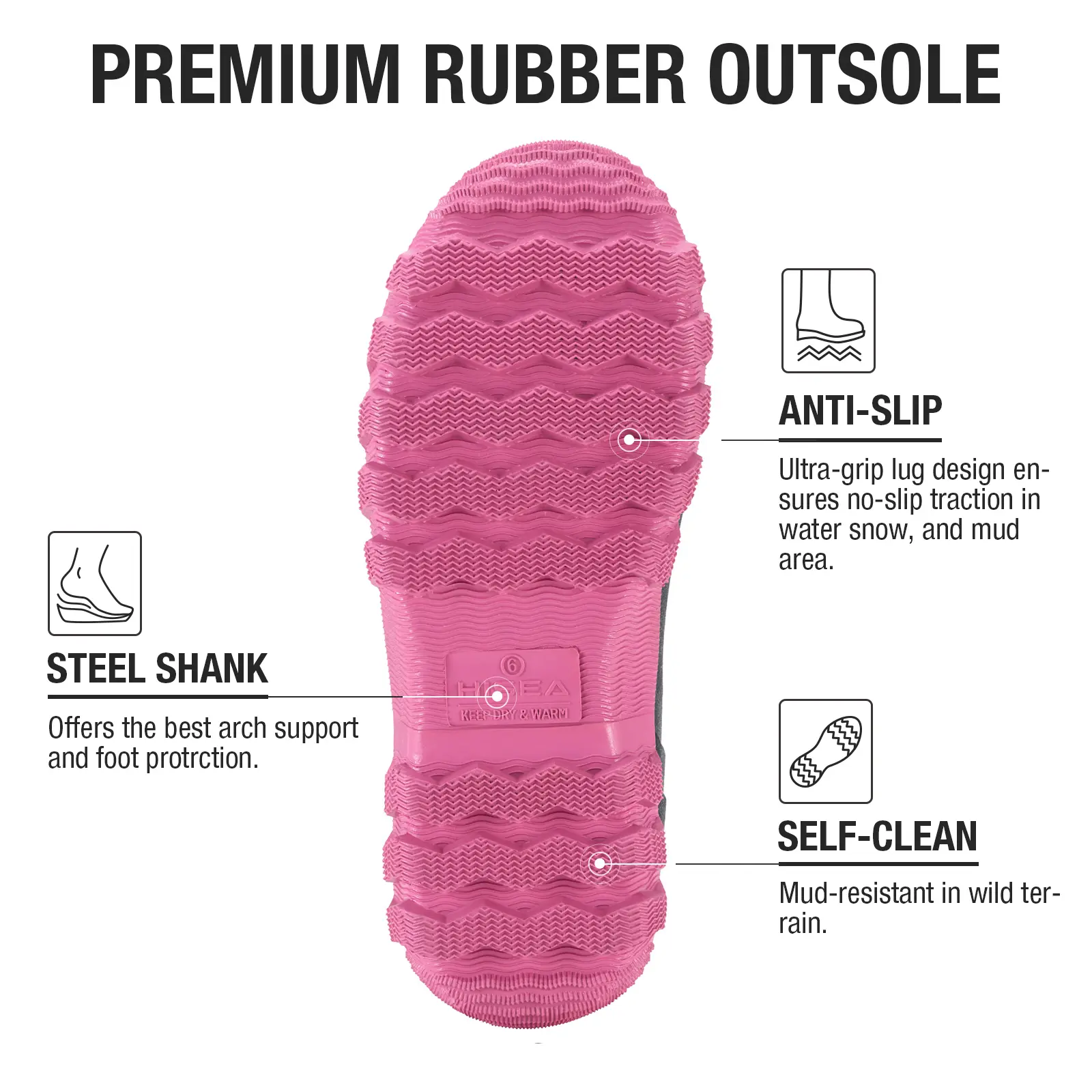 ·Waterproof Rubber: Ensures your feet stay dry. 🌧️