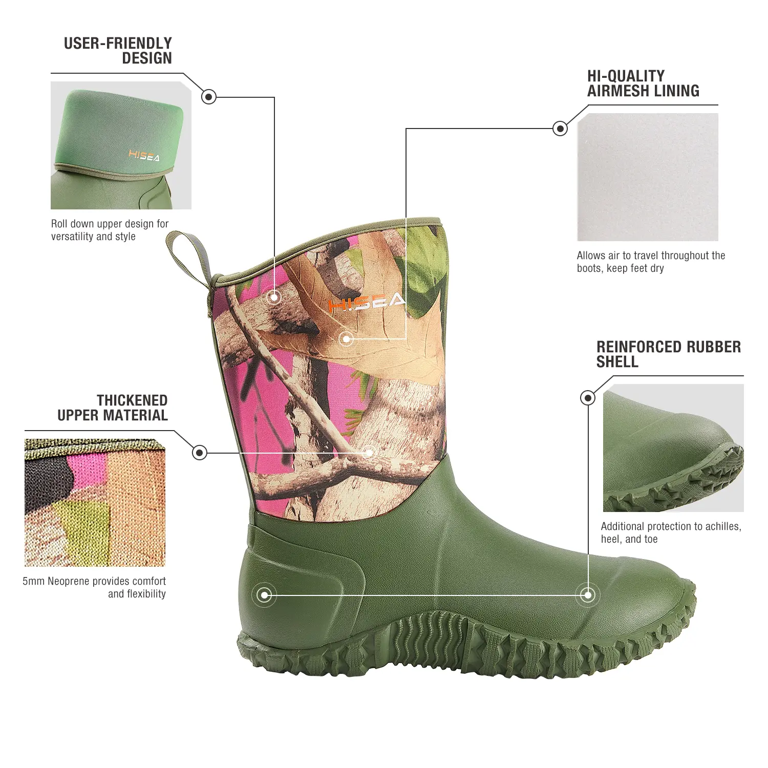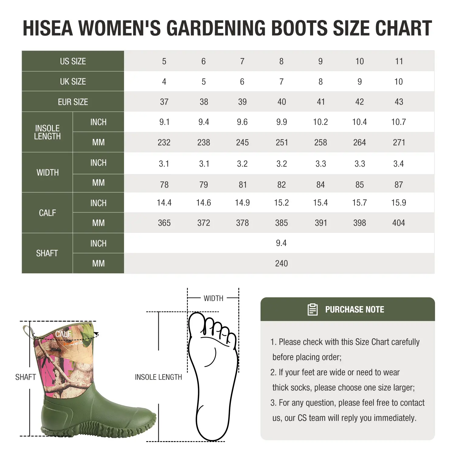 HISEA Women's Waterproof Garden Boots - Insulated Mid-Height Rubber Shoes for Yard Work, Gardening & MudHISEA Women's Waterproof Garden Boots - Insulated Mid-Height Rubber Shoes for Yard Work, Gardening & Mud