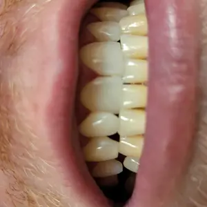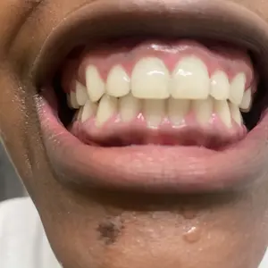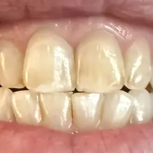 V34 is a brightening treatment designed to temporarily conceal stains, specifically focusing on the yellow tones in your teeth.