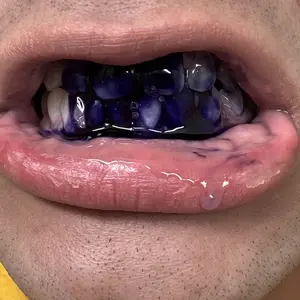 The best results are achieved with direct application of the V34 serum through a tool such as a cotton swab. It’s important to gently polish the serum onto your teeth, specifically focusing on the spots that are the most yellow. V34 can be reapplied daily, and it is recommended to use it just before going out as a concealer for your yellow stains and a brightening boost to your smile.
