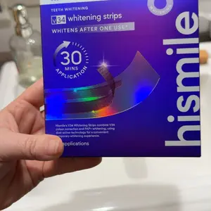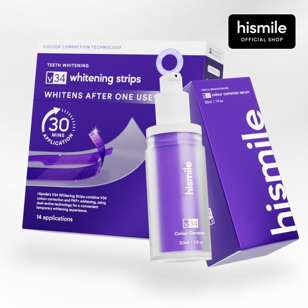 Hismile's all new V34 Strips combine V34 & PAP+ technology - Whitening with no Hydrogen-Peroxide.