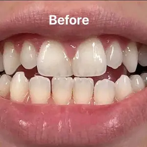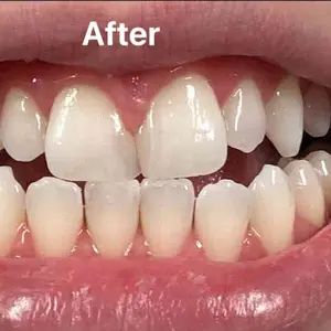 I used this product once for an hour. Two people told me they felt it looked whiter before, and now it’s caused discoloration on the bonding in the center of my teeth, which is concerning because normal crest white strips does not cause any problems like this. Also, massively irritated my gums