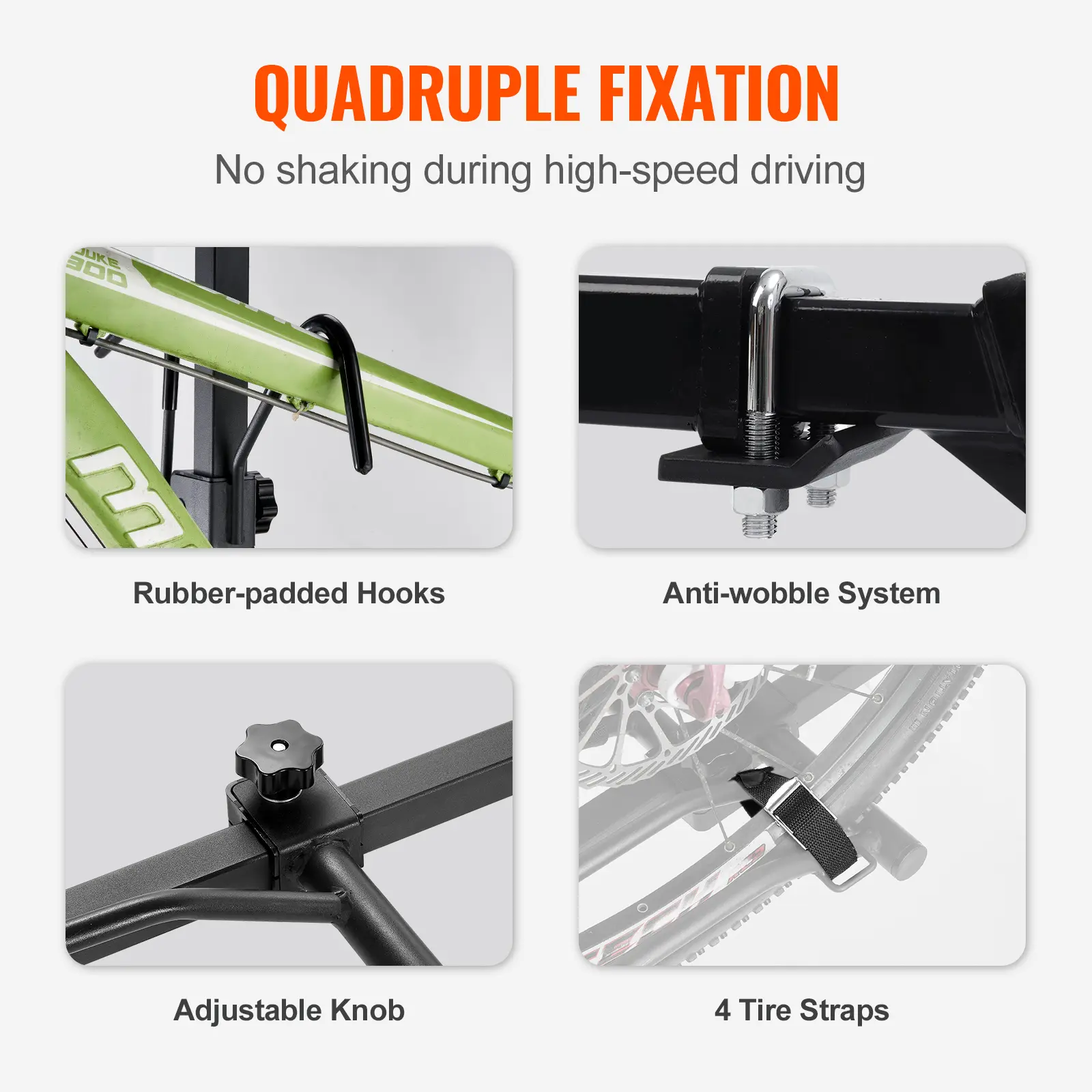 • Secure on Every Trip: Use the included straps to securely fasten tires to the bike carrier, and the hooks come with soft cushions to protect your bike's surface. Prevent any potential rubbing or damage to your bike during high-speed travel, and keep your bike securely fixed to the carrier.