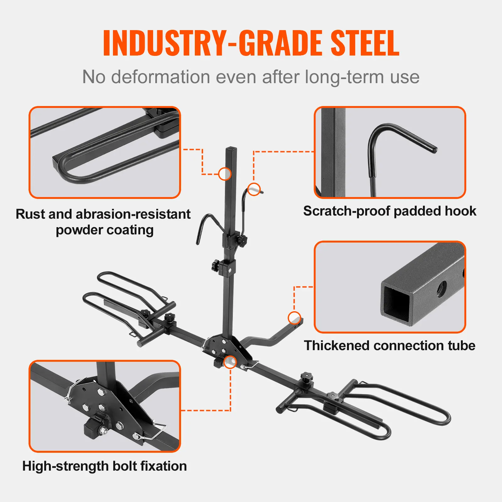 • 80 LBS Max Weight Capacity: Our hitch bike rack is made of heavy-duty steel that can handle up to 80 lbs of weight. Each rack can carry up to 40 lbs. This hitch mount bike rack accommodates tire widths of up to 2.4 inches, which is suitable for most bicycles.