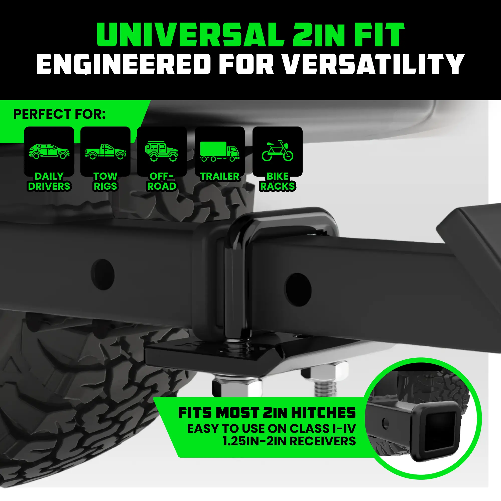 ·UNIVERSAL COMPATIBILITY - Designed for 2" Hitches, our Stabilizer Fits Class I-IV hitches, Ensuring a Secure and Universal fit for Various Towing Setups.