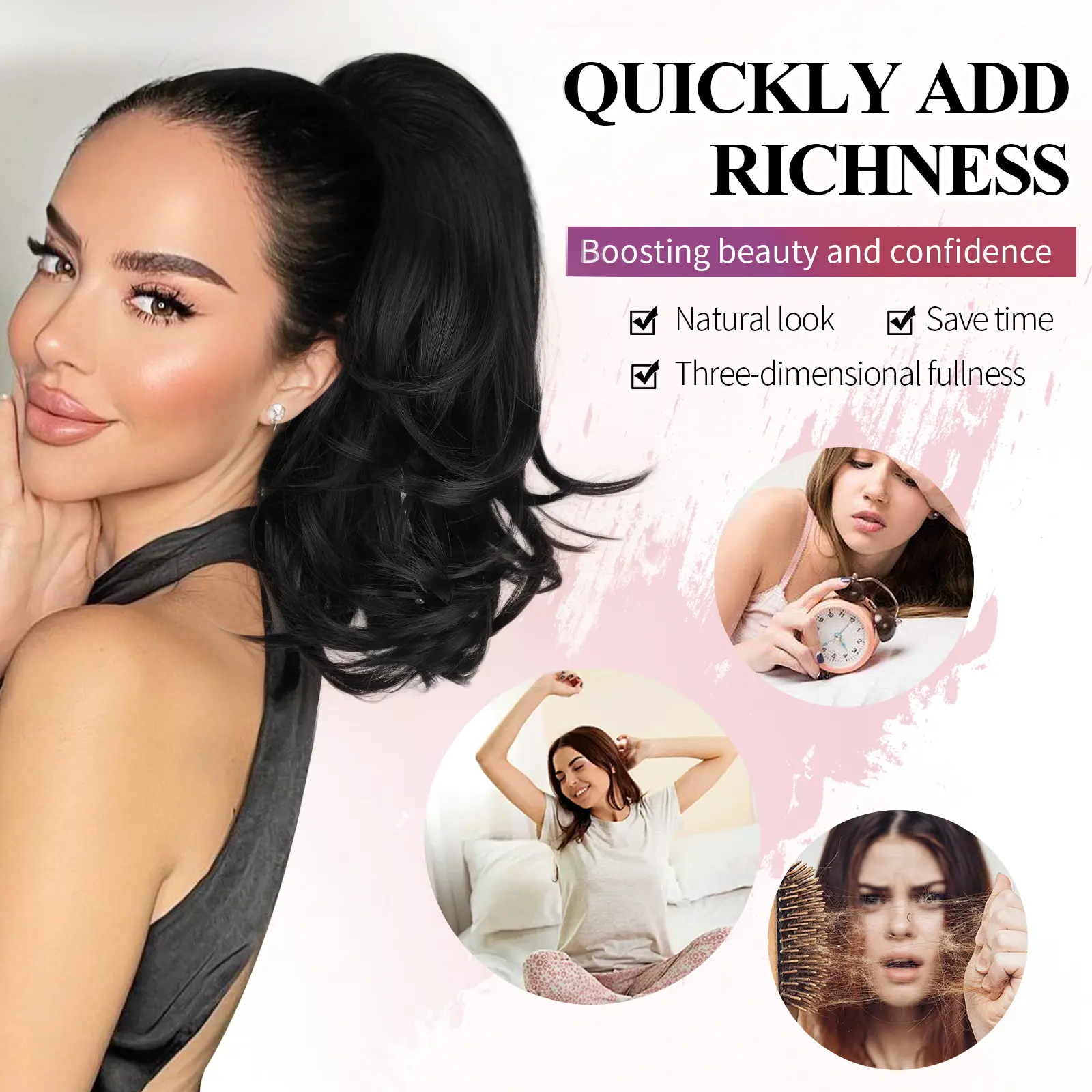I love this ponytail extension. I get lots of compliments. It stays in my hair even when it is really windy. The black color blends seamlessly with my hair, and it feels soft and natural. Such an easy and affordable way to boost my confidence and switch up my hairstyle in minutes.