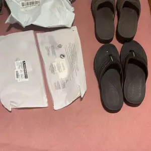 Nice pair of flip flops. They have a nice arch support, grippy thick sole and comfortable. The tops are rough on the bottom of the foot at first, but they are smoothing out now. Would order again.