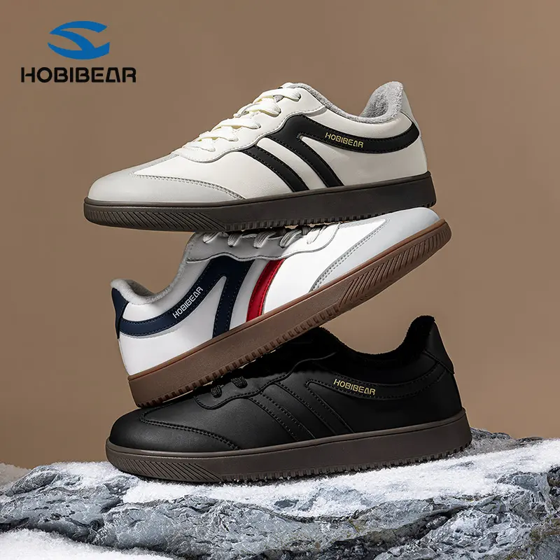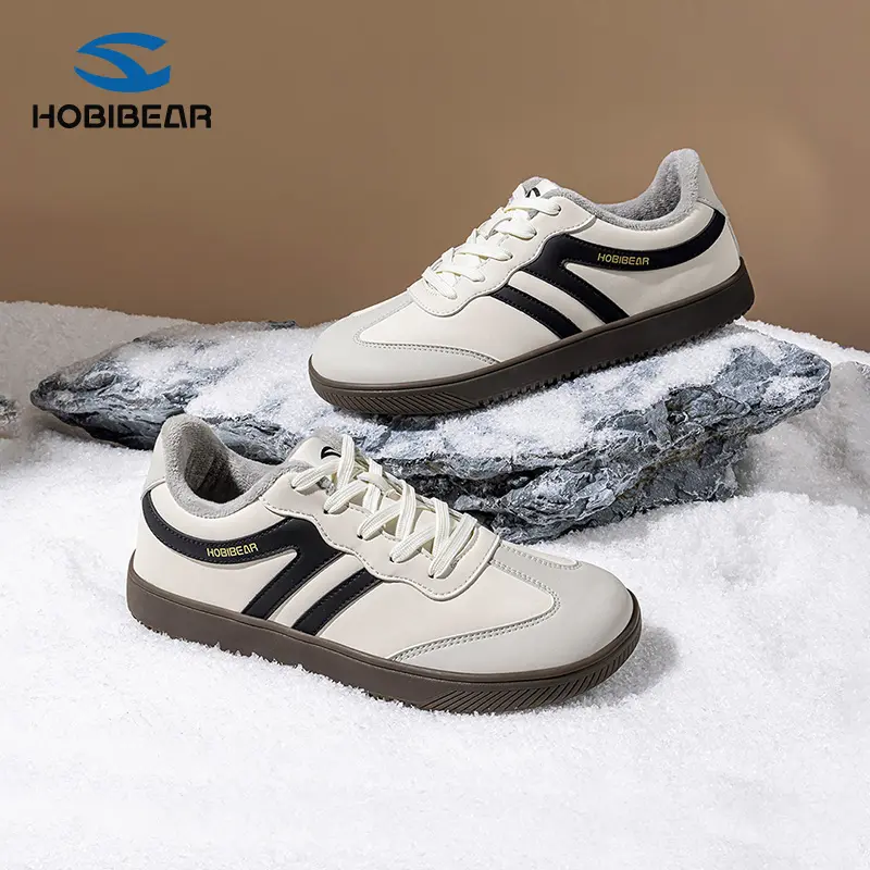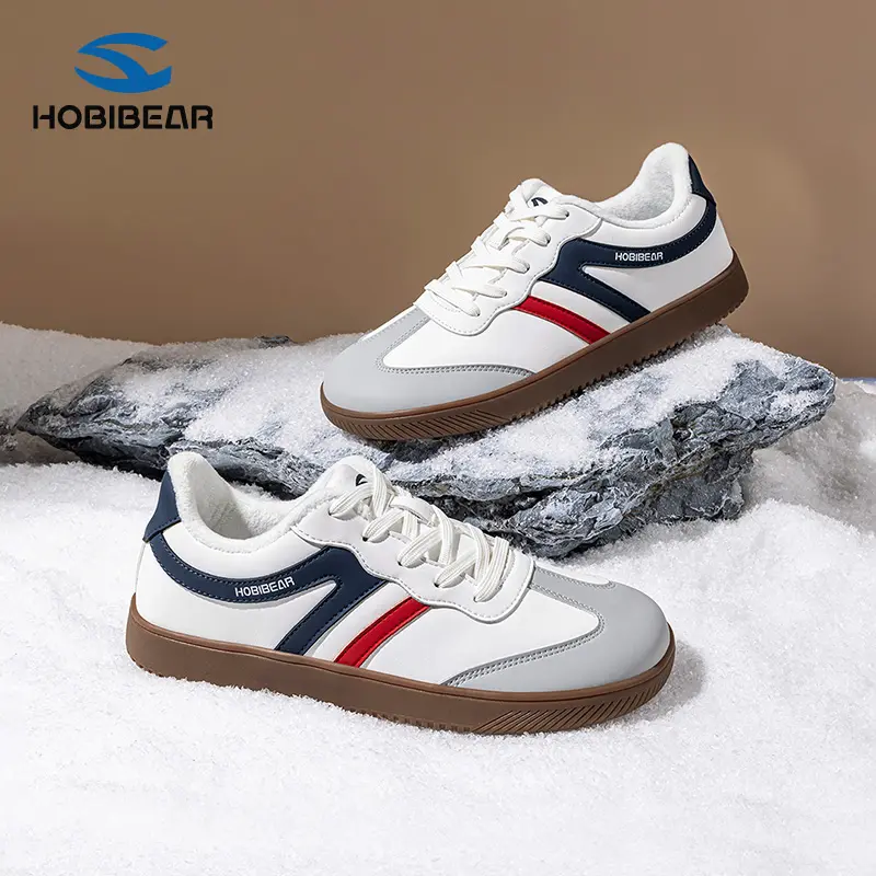 HOBIBEAR New Plush Lined Warm Loafers Flat Casual Training Shoes Lace Up Retro Style Sneakers
