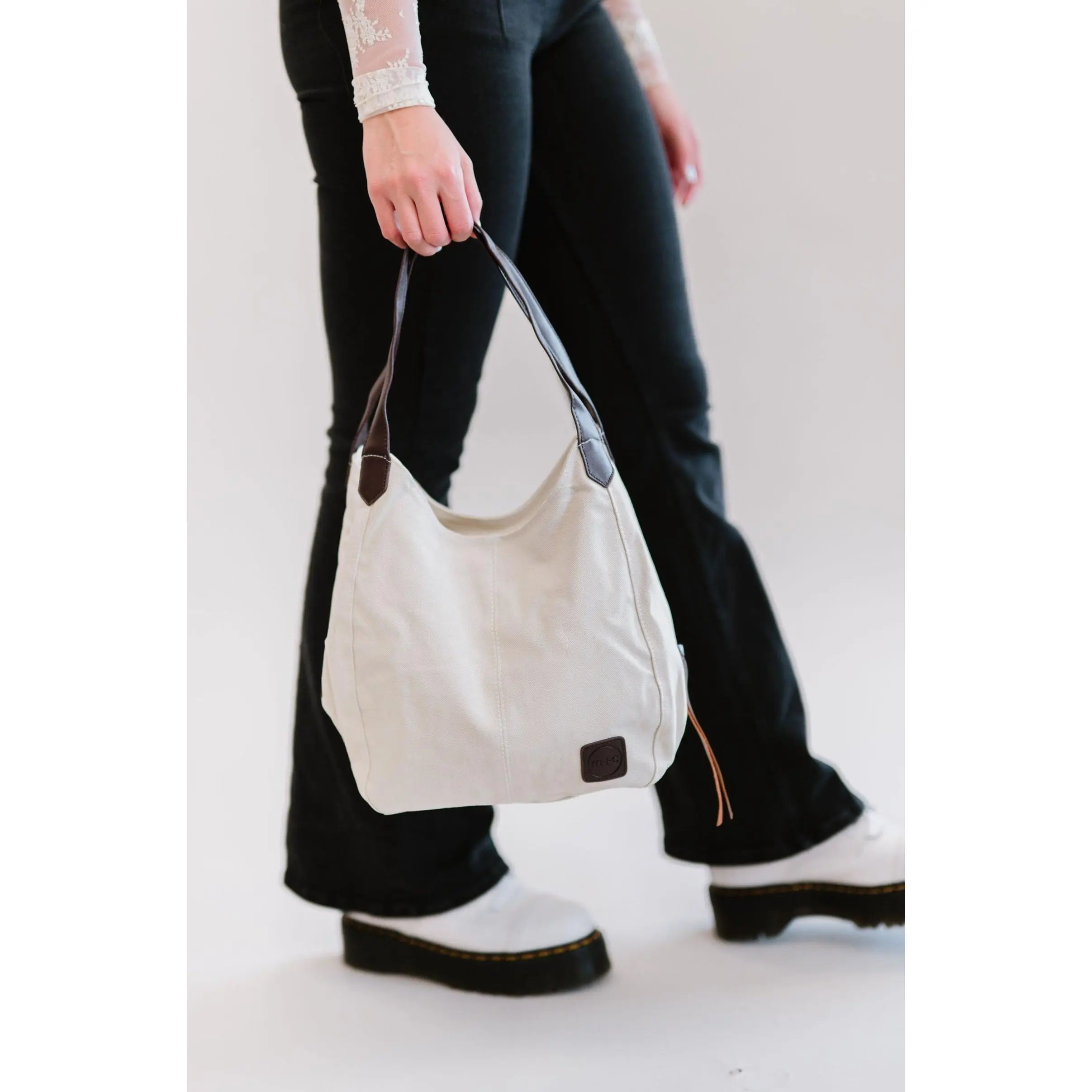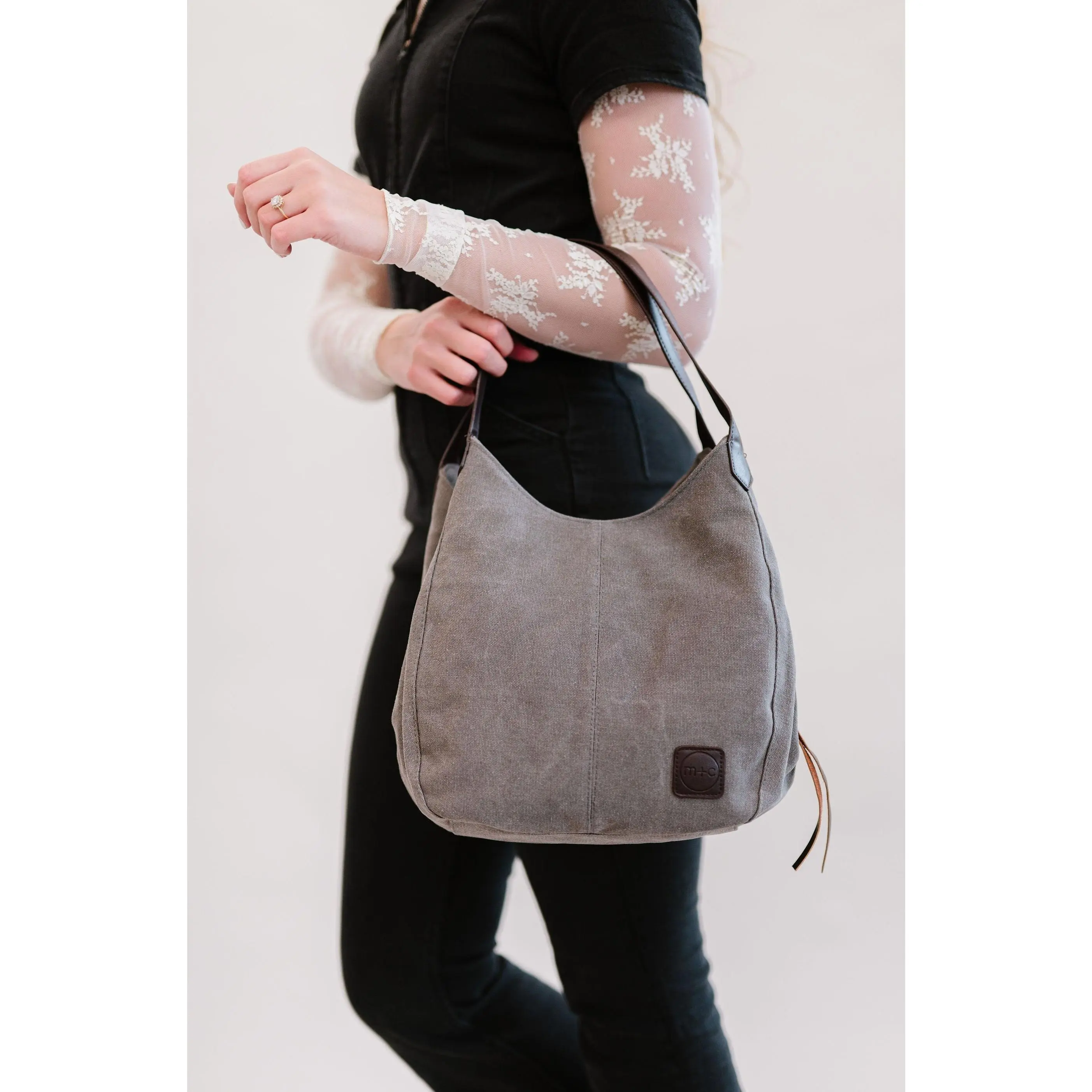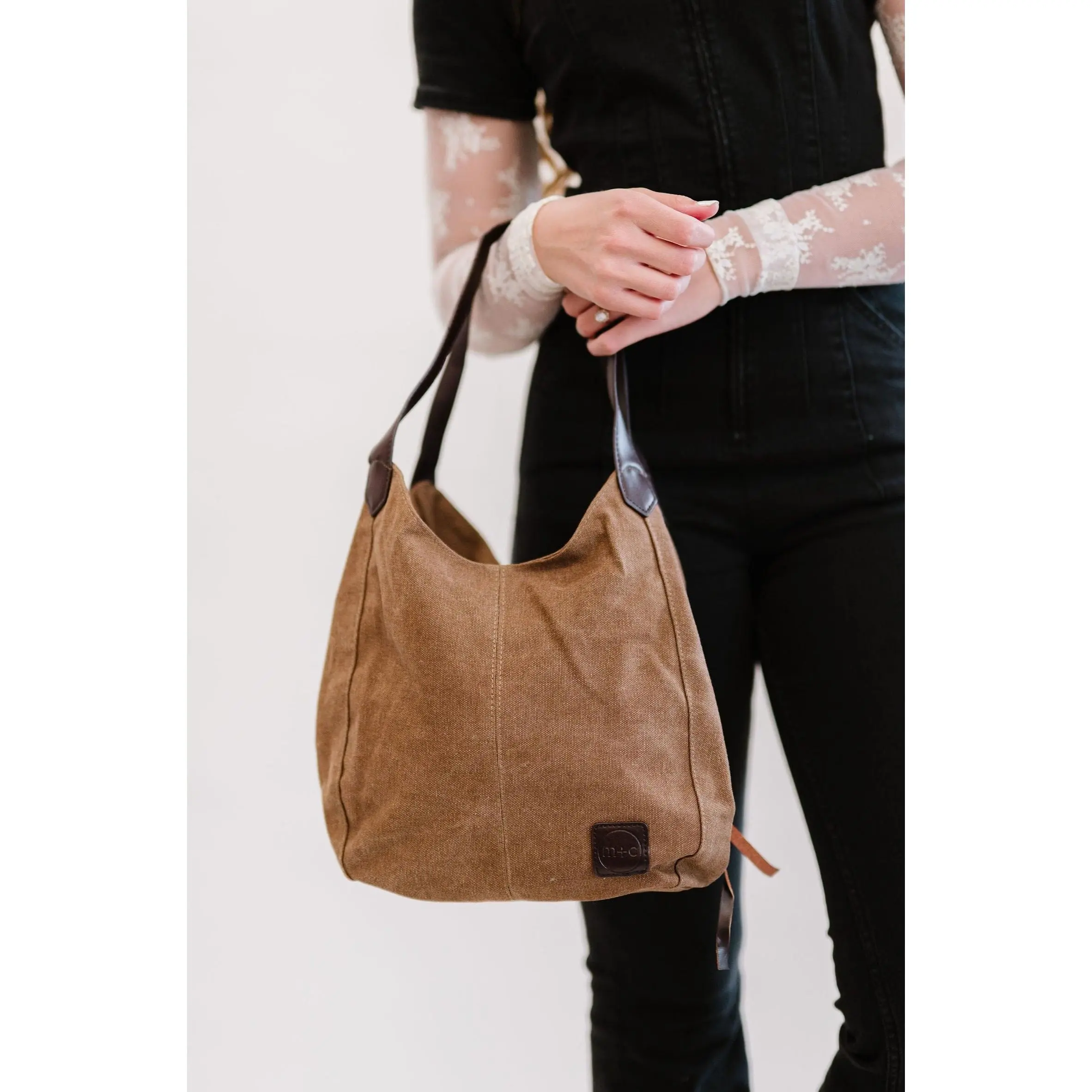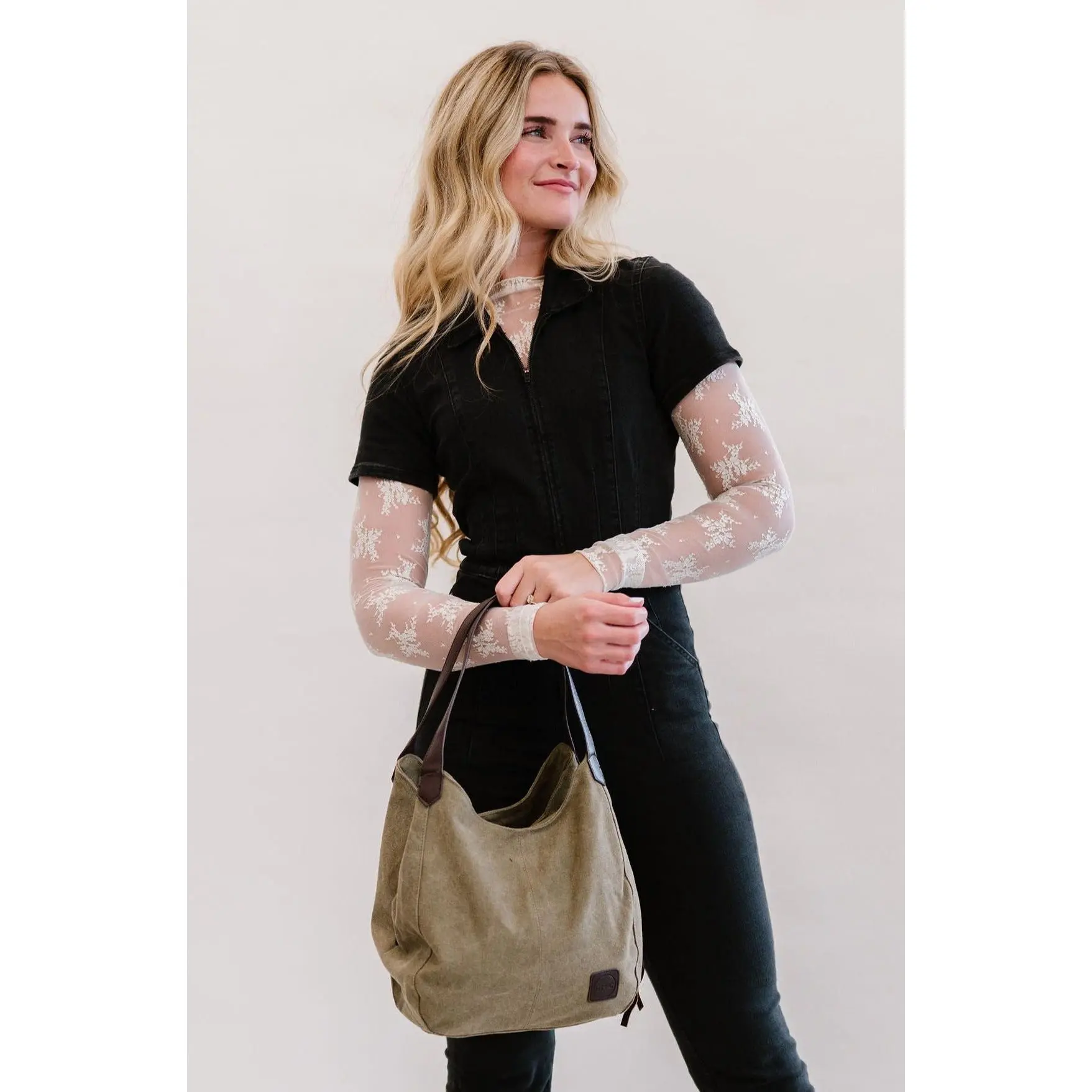 Great bag! Love the canvas material and faux leather details. Very cute and spacious. Great shoulder bag!