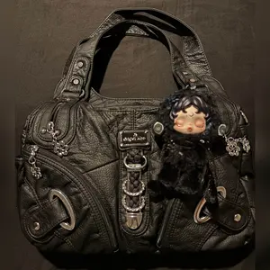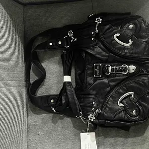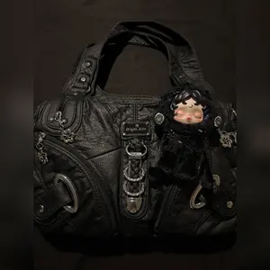 I love it so much. It's big and spacious. I can fit my iPad, Switch 2 and more. Love the Y2K style. Can't wait to add chains and decorate it more. I'm buying the small one in rose once it restocks. 👜🖤