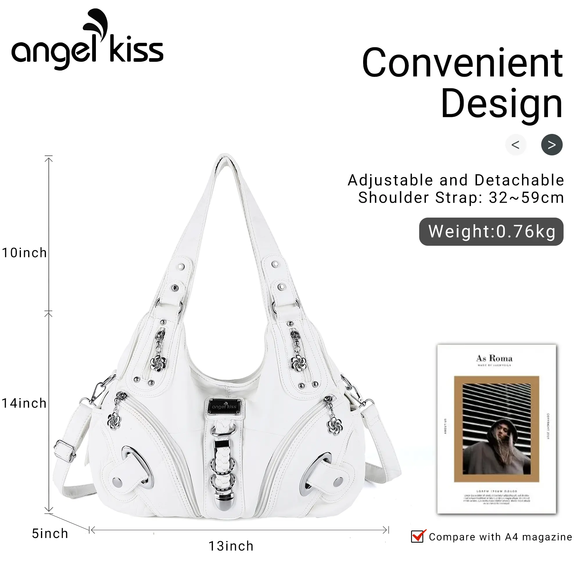 Im so happy, I’ve been looking for a bag like this for a while, I love all the pockets the leather is soft and the amount of space is amazing,I was able to fit all my belongings including a camera, kindle, 2 books of 500 pages and a mini makeup kit, only minor detail was some damage on the hardware