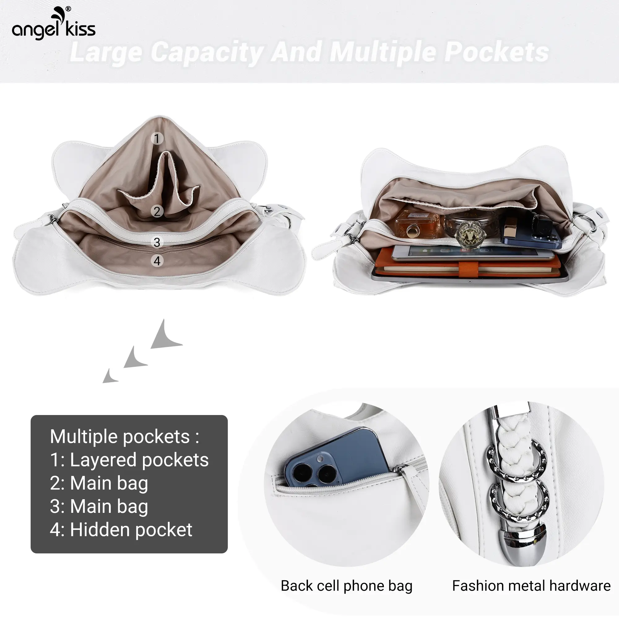purse of my dreams! it has two big zipper compartments with pockets, and other small pockets on the outer sides and back of the bag. it is pretty spacious (ignore my stuff alrdy inside..), and it also has a longer strap too, good purchase❤️❤️
