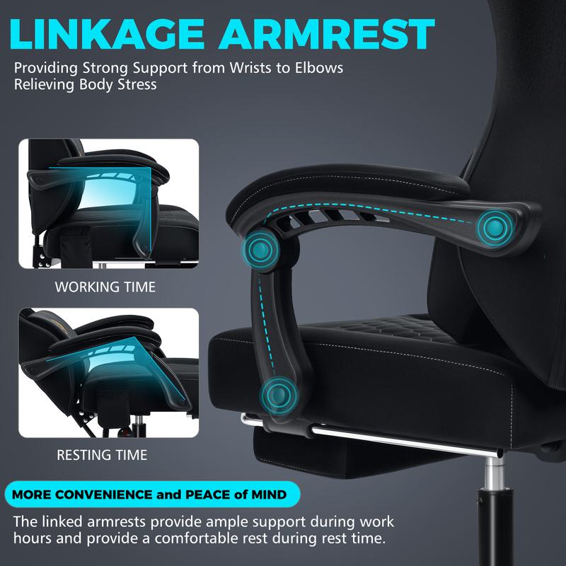 Armrests move with the chair as you recline, keeping arms supported while gaming or relaxing.