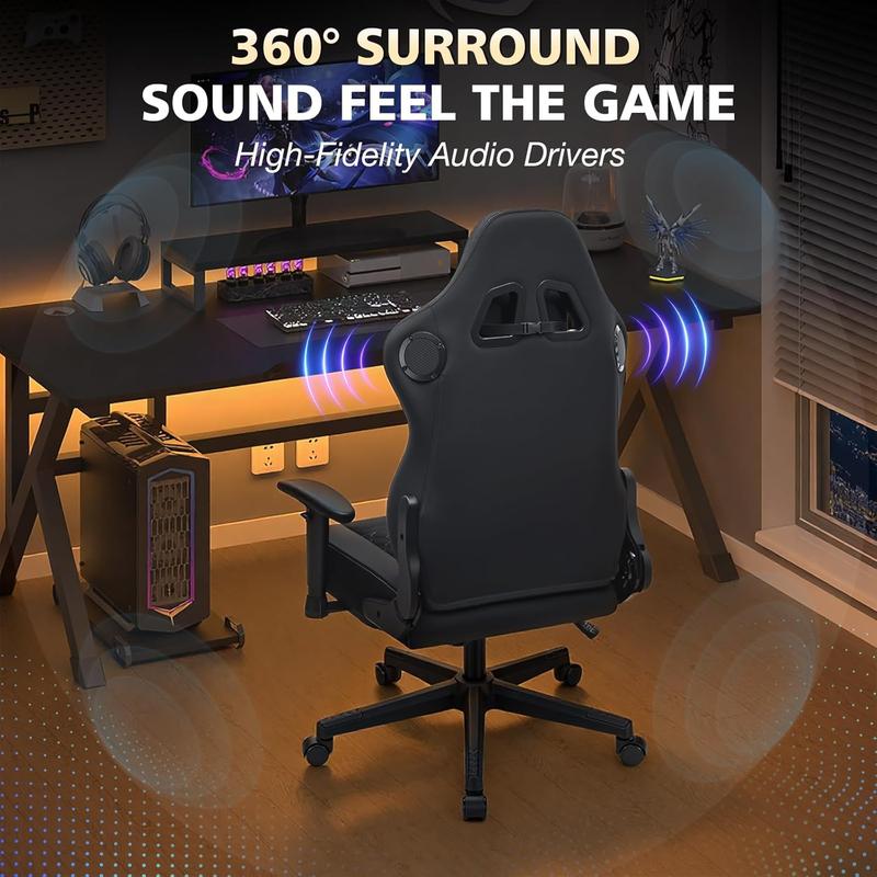 5. HOFFREE Gaming Chair Suede Fabric with Speakers Massage Gaming Chairs with Pocket Spring Cushion 165° Reclining Game Chairs for Adults Ergonomic Computer Chair for Gaming Office Black