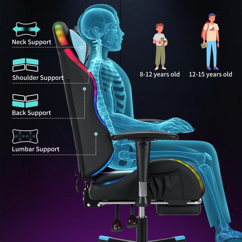 LED Gaming Chair for Kids (Ages 8–15)