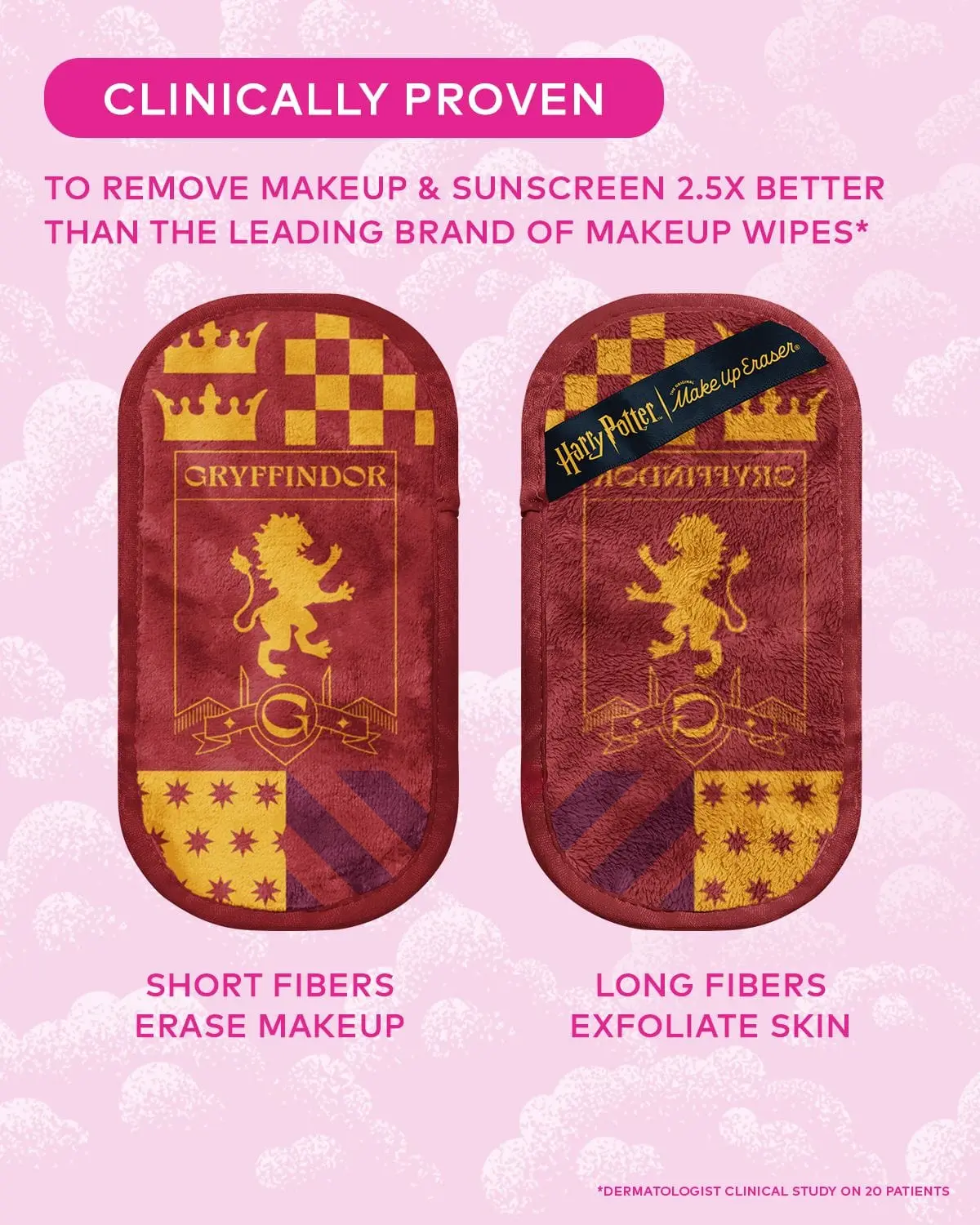 Erase all makeup with JUST WATER™ including waterproof. Our patented, water-activated, cloud-soft fibers gently & easily remove all makeup & sunscreen from pores. 2 in 1 benefit: one side erases makeup & one side exfoliates skin.