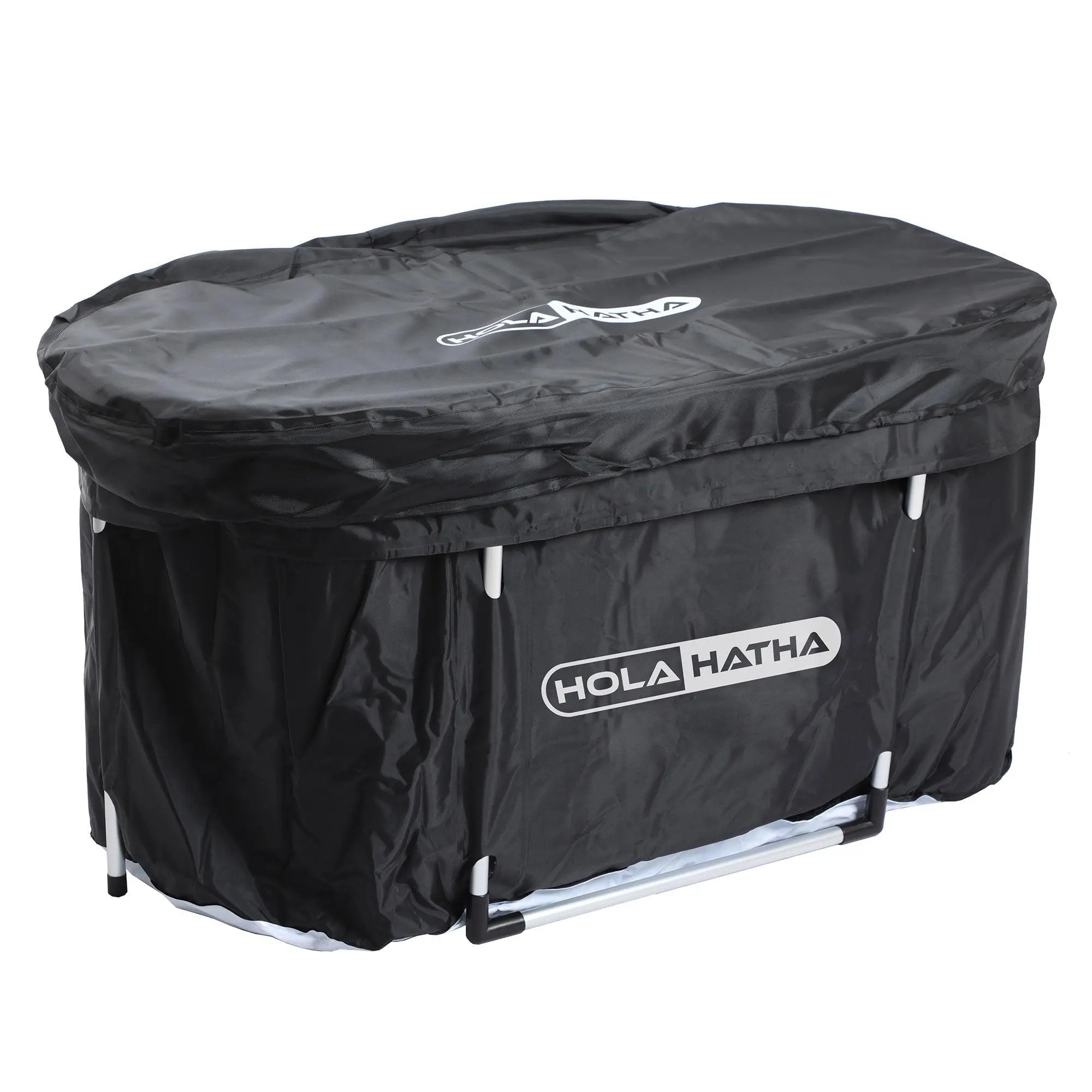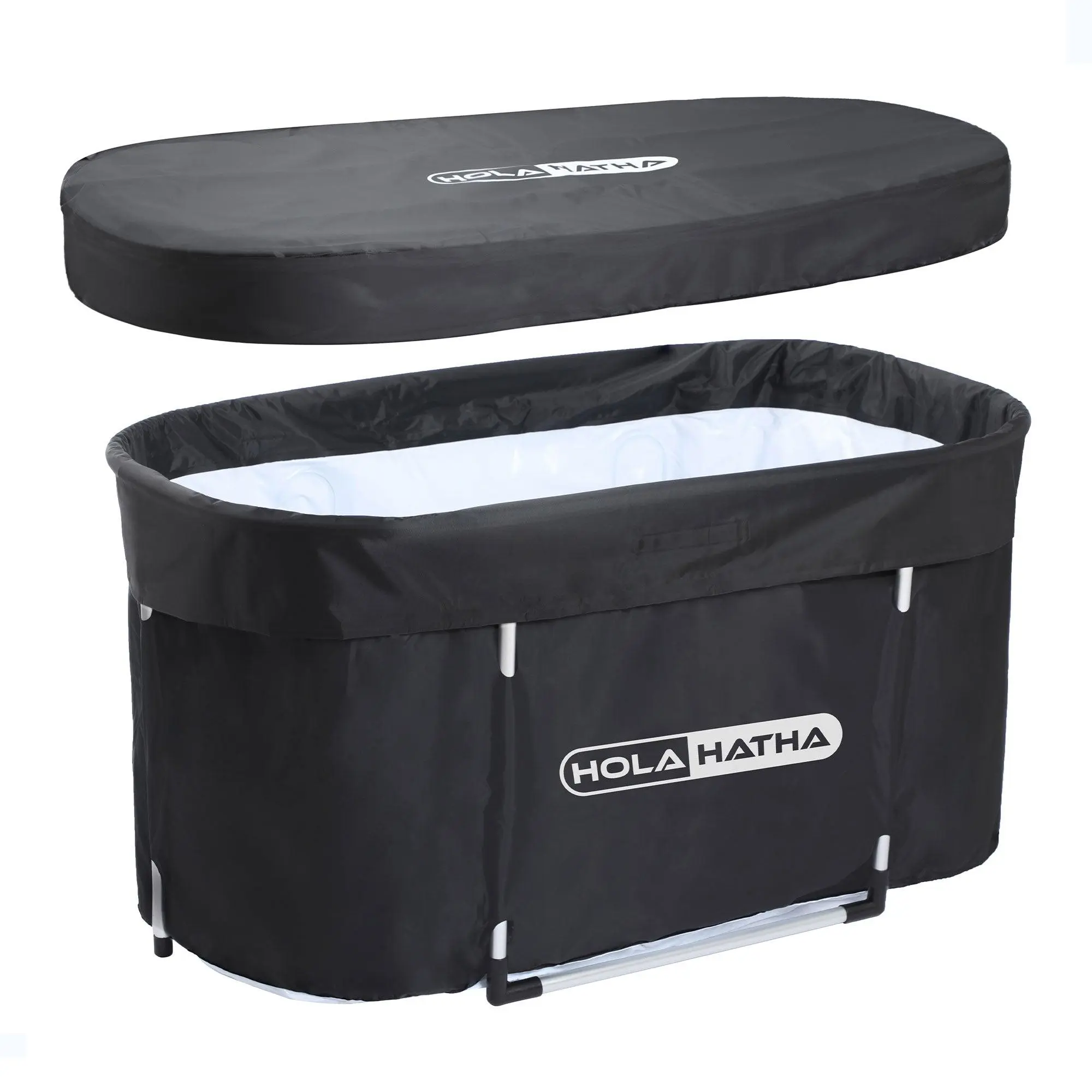 Experience rapid post-workout recovery with the HolaHatha 129 Gallon Portable Oval Ice Bath Tub, perfect for athletes and fitness enthusiasts targeting muscle soreness and lactic acid buildup. This cold plunge tub reduces inflammation and boosts immunity, helping you bounce back faster. The spacious oval design provides 3.93 feet of room, ensuring a comfortable soak with full leg extension. Supported by 8 durable aluminum alloy posts, the tub holds up to 799 pounds, accommodating all body sizes for a stable and relaxing recovery.Not just for cold therapy, this versatile ice bath tub also supports hot water therapy. Its 6-layer insulated construction maintains temperatures from negative 86 degrees Fahrenheit to 140 degrees Fahrenheit, offering both deep cold water immersion and warm soaks for ultimate muscle relaxation. Whether you're recovering from intense workouts or simply unwinding, this inflatable, collapsible ice tub is designed for indoor and outdoor use, making it portable and easy to set up wherever you are.Maintenance is a breeze with the 29.5-inch retractable drain and smooth surface for easy cleaning. Simply open the external drain valve for hassle-free water removal. The set includes a pillow, air seat, faucet, drainage pipe, and repair patches, along with a free protective cover to shield against outdoor debris. The HolaHatha Ice Bath is the ideal solution for cold and hot therapy at home or on the go, offering fast recovery and relaxation in any setting.