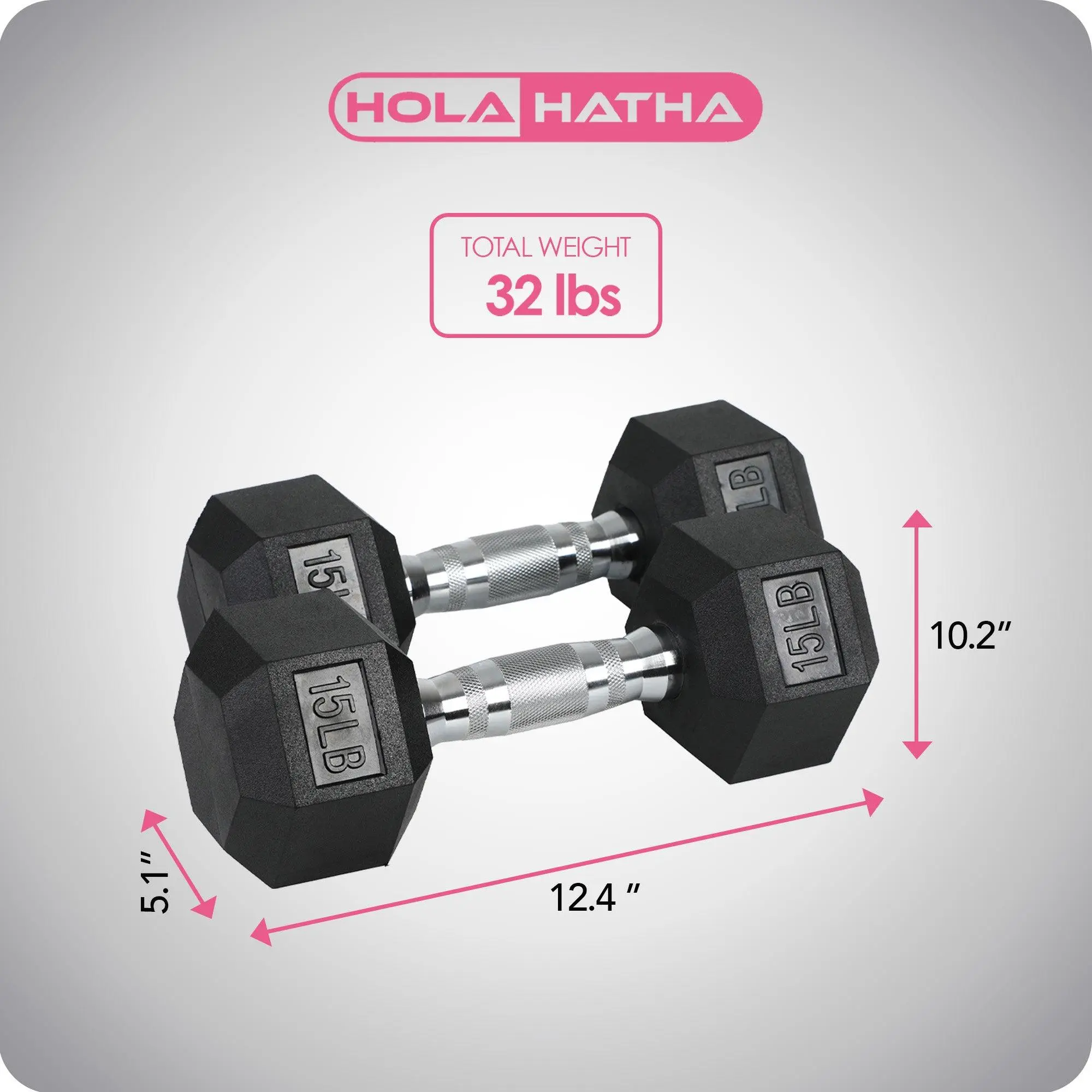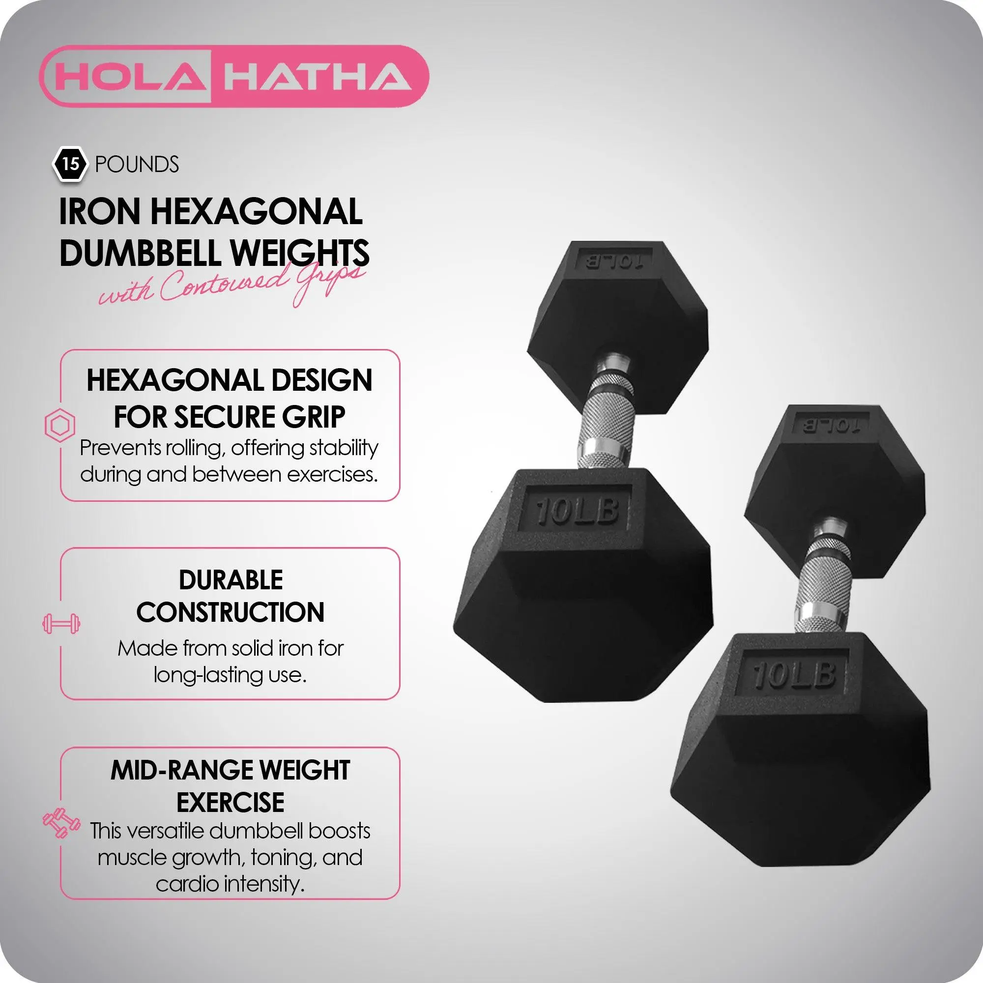 Start sculpting your ideal body with the durable and heavy Iron Hexagonal Dumbbell Free Weight from HolaHatha. This 15-pound dynamic weight serves as the cornerstone for those seeking durability, heft, and unparalleled versatility in their fitness regimen.The dumbbell includes weights that are ideal for intermediate training and bulking. With an excellent mid-range weight, the dumbbell helps build muscle for those looking to bulk up, tone their body, or add some intensity to their cardio routine. Constructed from solid iron that withstands the punishment of regular workouts, the textured grips feature an elegant, contoured shape that provides you with a firm, confident, and comfortable grip during each rep. This thoughtful design not only enhances your grip but also elevates your overall workout experience, instilling a sense of assurance and control. The convenient hexagonal shape ensures the dumbbell lies flat on the ground, keeping it from rolling and allowing for easy stacking for space-saving storage.Excellent for adding extra intensity to your home workout or completing a professional gym setup, the Iron Hexagonal Free Weight from HolaHatha equips you for nearly any type of exercise. Whether you're amplifying the intensity of your home workout sanctuary, this dumbbell emerges as the ultimate fitness ally.