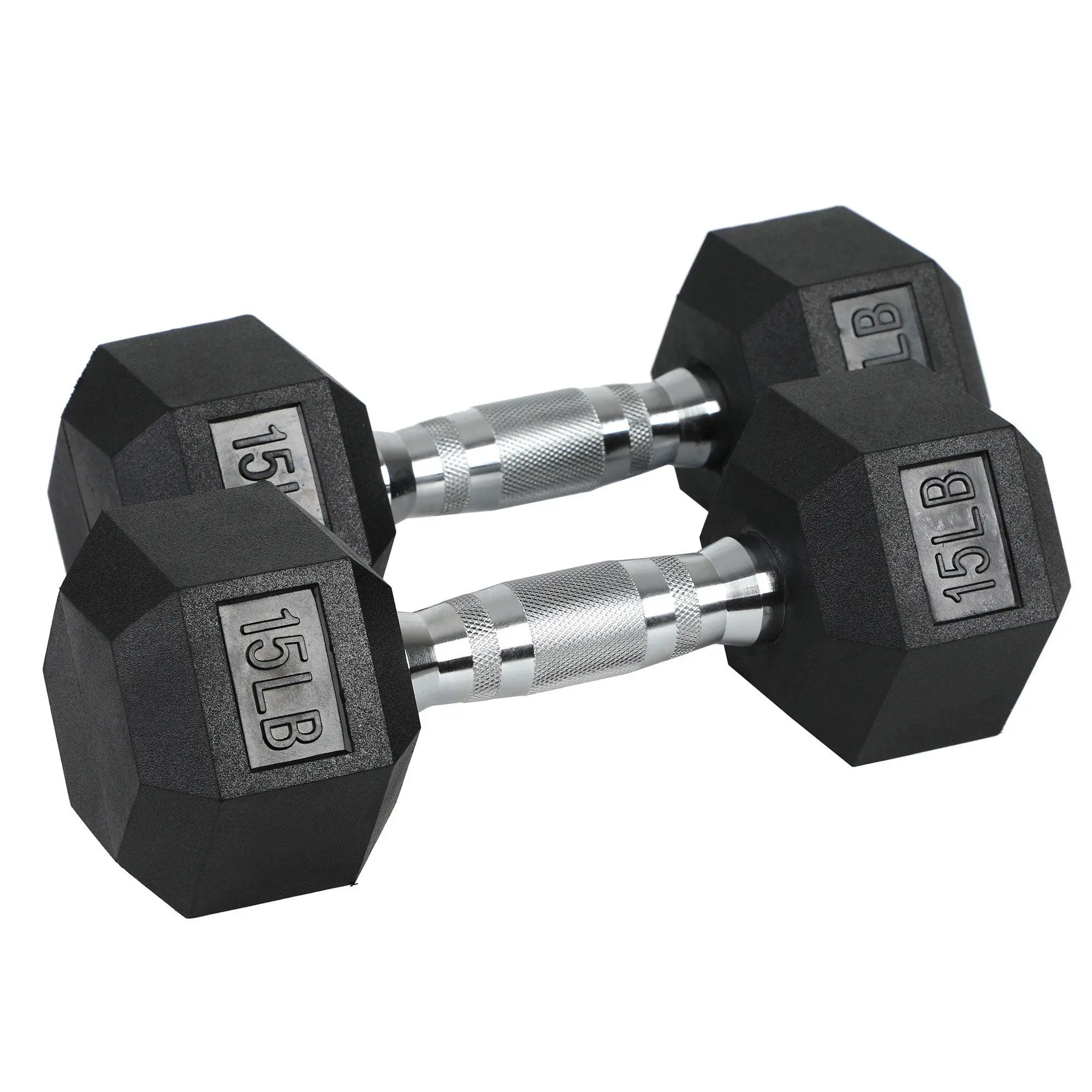 Durable 15-pound iron free weight dumbbell enhances your exercise routine with hefty weights that encourage muscle growth
