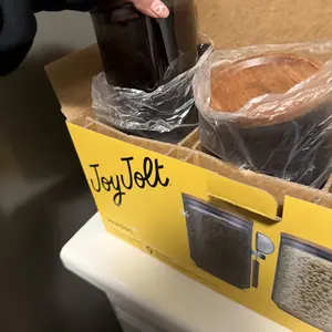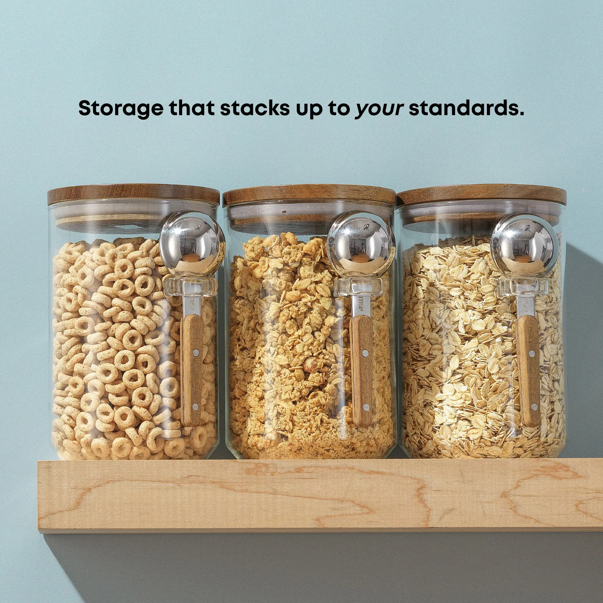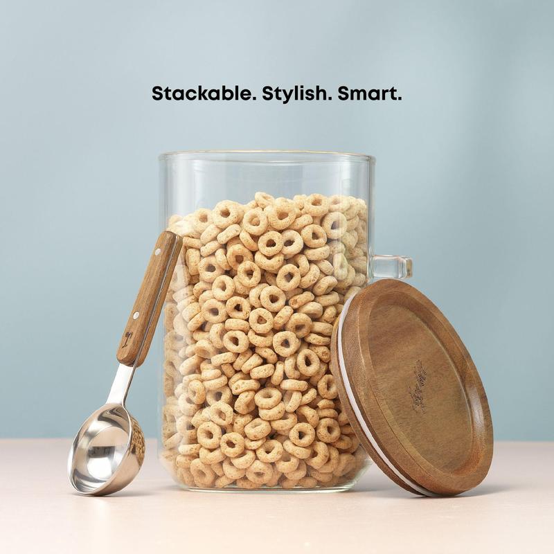 Scoop, store, repeat. These sleek glass canisters keep your everyday essentials fresh and ready—with matching scoops that slip right into place. Coffee, sugar, oatmeal? Go ahead, make it make sense (your way).