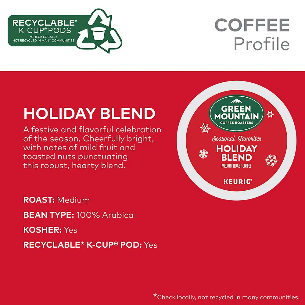 Green Mountain Coffee Roasters Holiday Blend Coffee -  Keurig K-Cup Pods - Medium Roast Coffee - Holiday Coffee Flavors - Seasonal Coffee Drinks