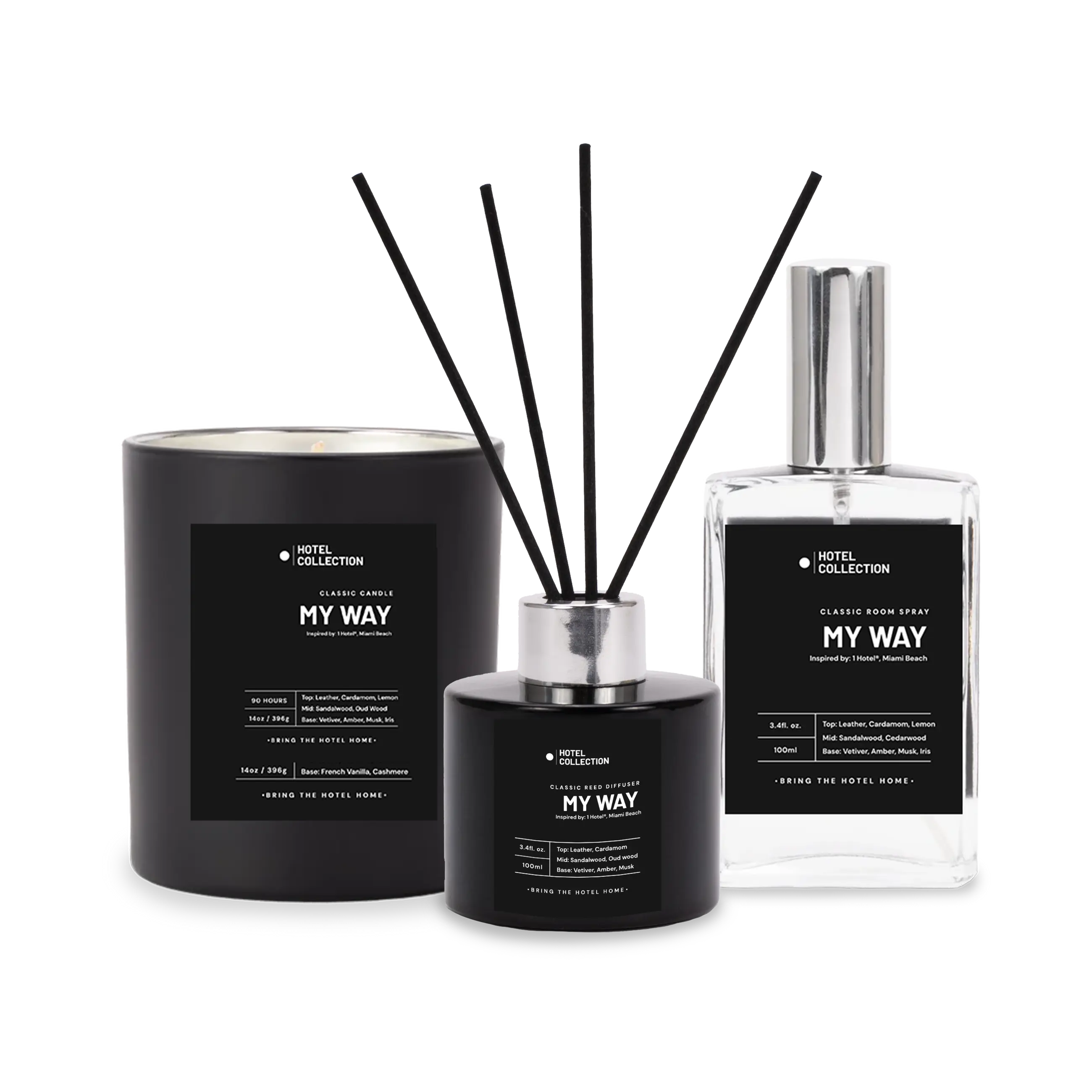 Exclusive Bundle | Luxury Hotel-Inspired trio set- Includes: 1 Reed Diffuser + 1 Classic Candle + 1 Room Spray