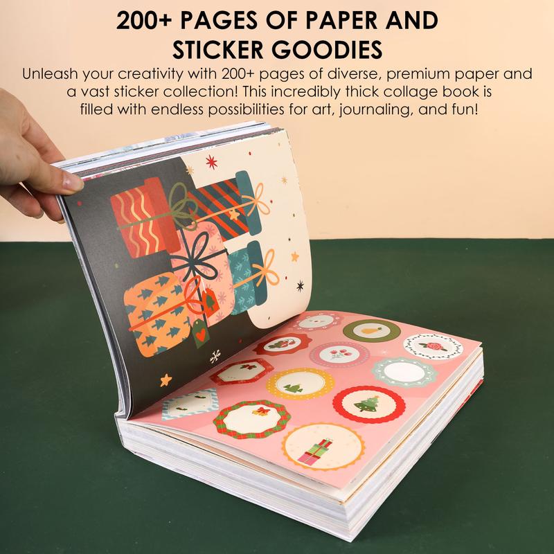 Immerse yourself in the festive season with this luxuriously thick collage book! Featuring 200+ pages of diverse premium papers and a curated sticker collection, we invite you on an enchanting journey themed "Holiday Magic" – unlocking infinite possibilities for art, journaling, and seasonal delight!