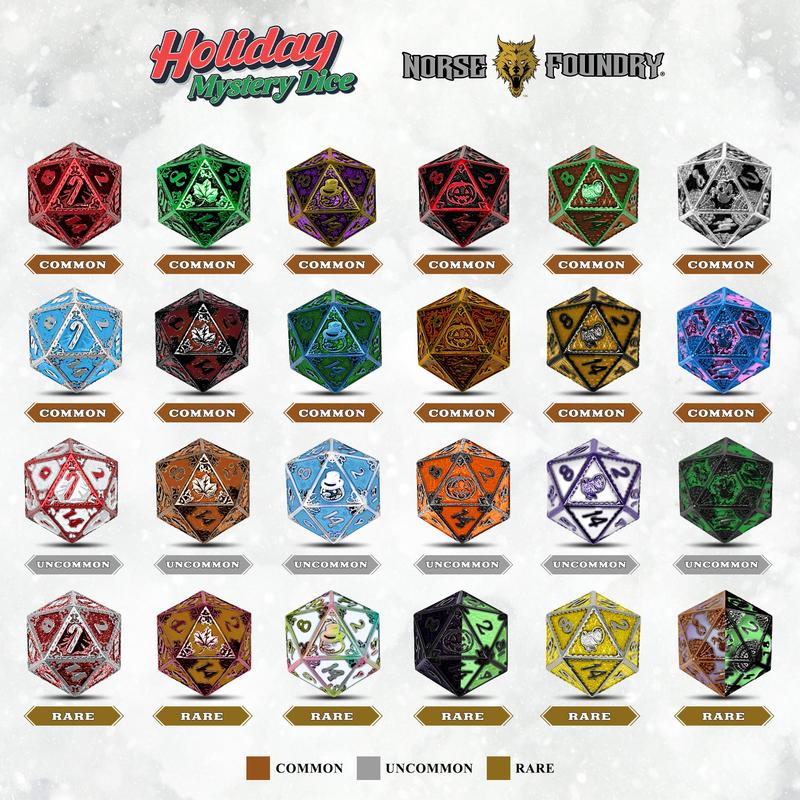 5. Holiday Mystery Metal D20 Dice for TTRPG - Oversized 25mm