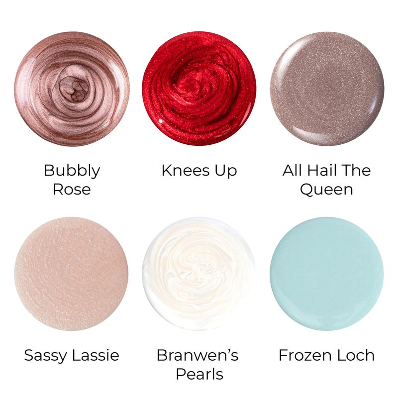Bring the sparkle this season with the Holiday Sparkles Nail Lacquer Kit — a dazzling 6-piece collection of Pure Colour 21X shades, perfect for every festive occasion. Featuring a mix of iconic and NEW shades, Knees Up, Bubbly Rose, Sassy Lassie, All Hail the Queen, Frozen Loch, and Branwen’s Pearls, this set delivers everything from bold metallics to soft shimmers and timeless neutrals. Whether you’re dressing up for a holiday soirée or adding a hint of shine to your everyday look, there’s a shade for every celebration. Find your sparkle this holiday season!