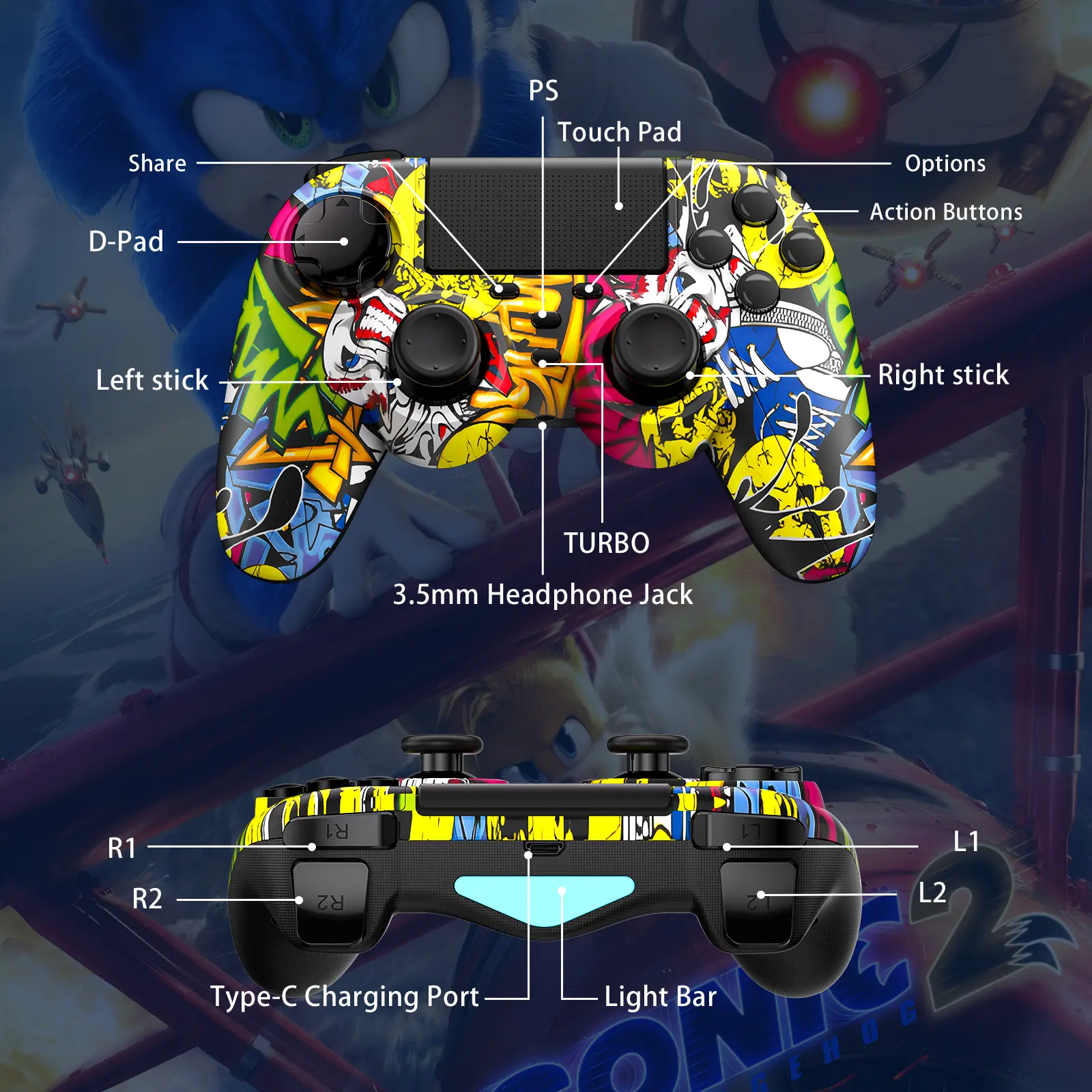 Los controles están un poco pequeños y los L2 y R2 se sienten muy frágiles y de mala calidad