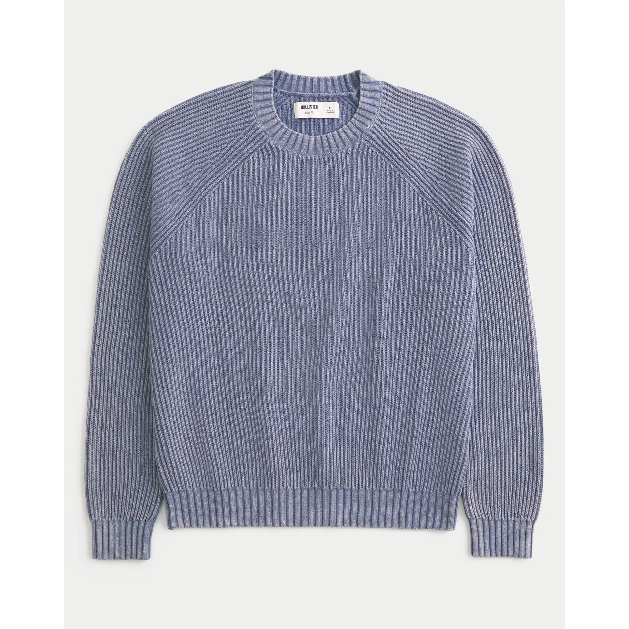A super soft and comfortable knit sweater with ribbed texture and a washed look. Crew neckline, long sleeves, ribbed trims. Boxy Fit. Imported.