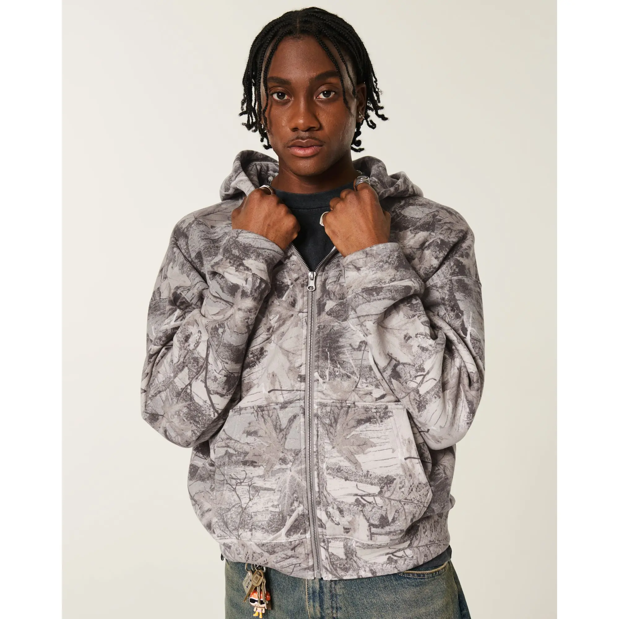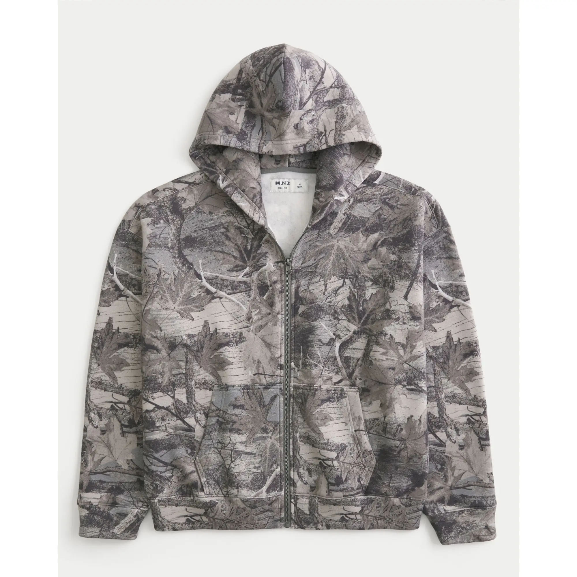 Hollister Feel Good Boxy Zip-Up Camo Hoodie