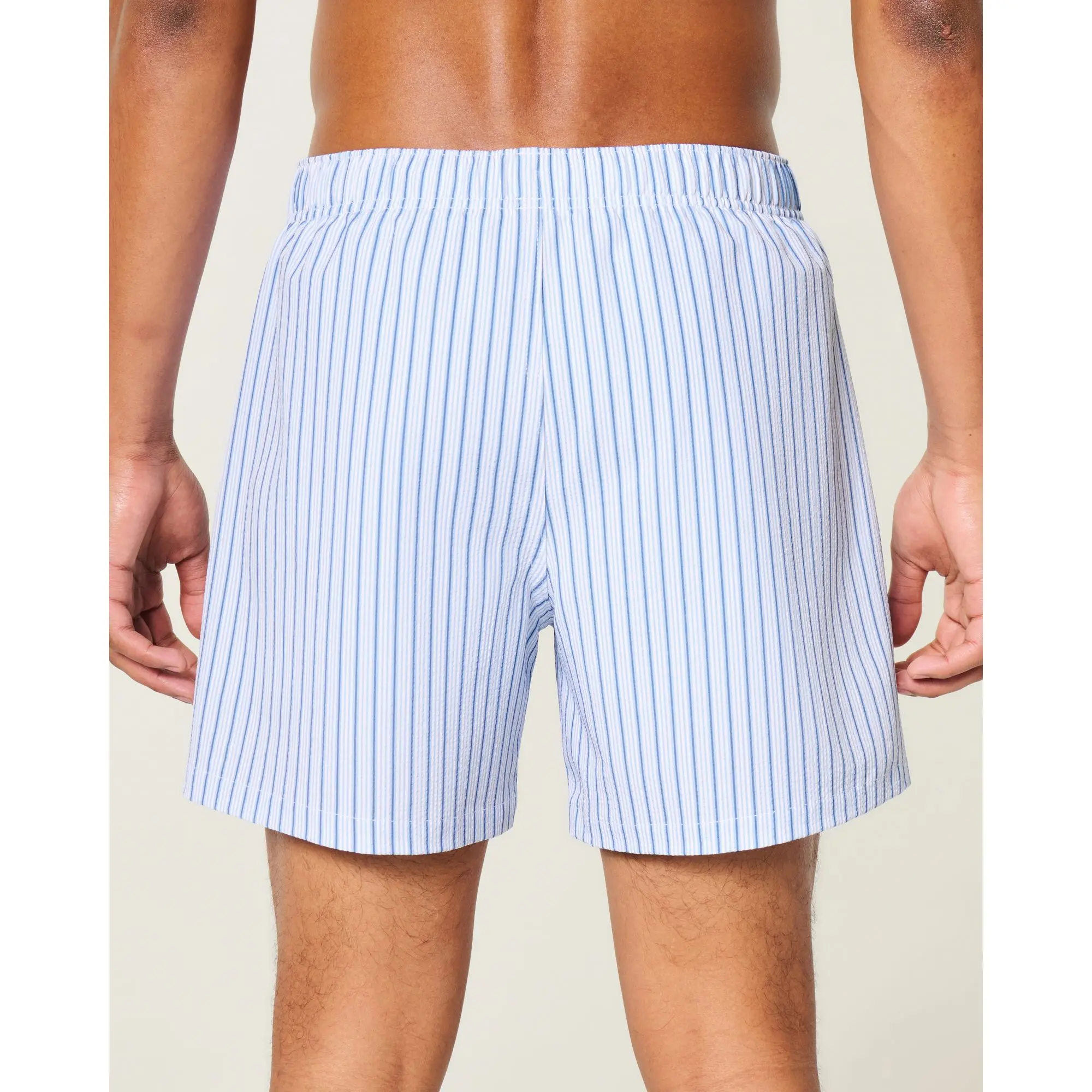 5. Hollister Mid-Thigh Seersucker Volley Swim Trunks
