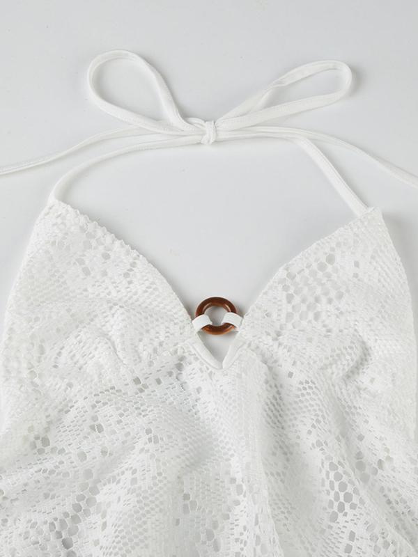 Women's Solid Hollow Out Halter Neck Top, Casual Basic Sleeveless Fitted Crochet Top for Beach Holiday Vacation, Ladies Clothes for Summer, Womenswear, Bohemian Sleeveless Top, Breathable Sleeveless Top, Boho Sleeveless Top