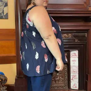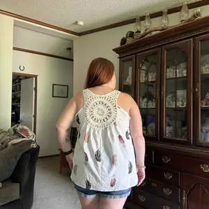 Beautiful, V neck with detail to the leaves on the tank top, and detail crochet pattern on the back.fit to size.