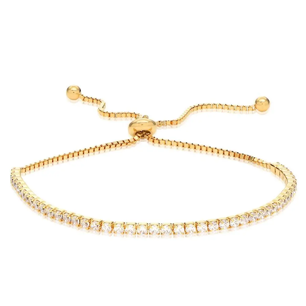 Elevate your holiday look with the Holly Adjustable Tennis Bracelet, a stunning accessory crafted in lustrous Gold Plating and embellished with dazzling cubic zirconia. Its adjustable design allows for easy layering, adding an elegant touch to any ensemble. Embrace the spirit of the season with enduring sophistication and sparkle.